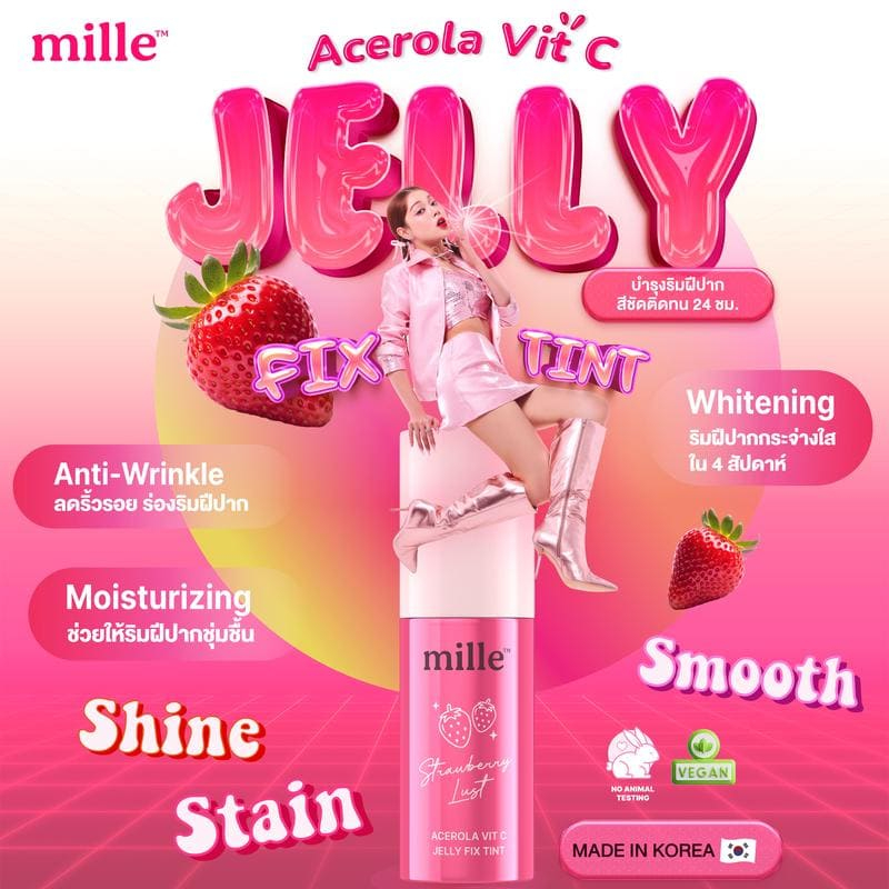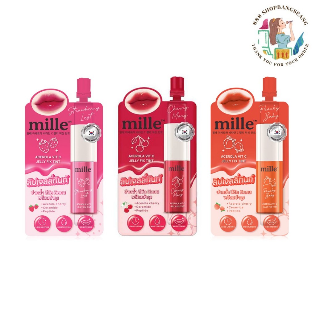 (1ซอง) ลิปซอง ลิปเจลลี่ทินท์ Mille Acerola Vit C Jelly Fix Tint