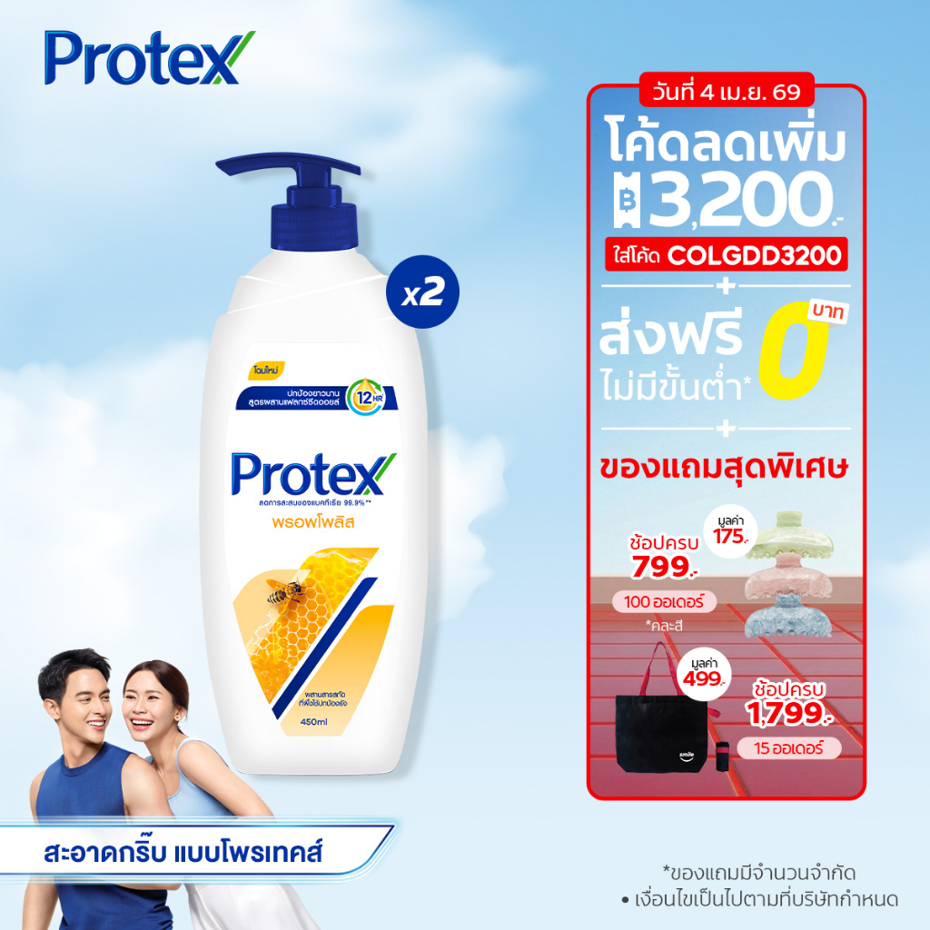 [มี 2 แพ็คให้เลือก] ครีมอาบน้ำโพรเทคส์ พรอพโพลิส ขวดปั๊ม 450 มล. Protex Propolis Shower Cream 450 ml Pump