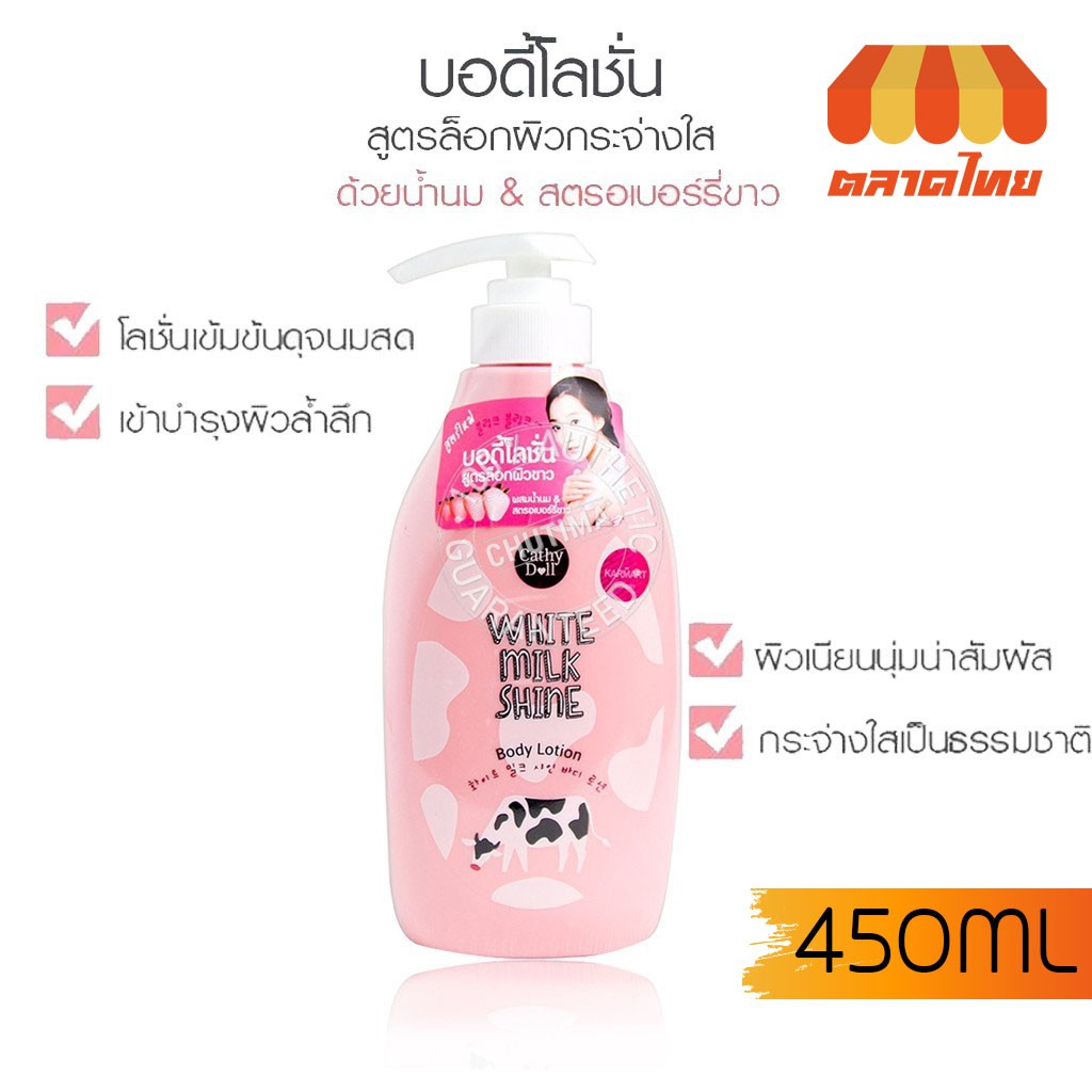 ครีมทาผิว ครีมอาบน้ำ เคที่ดอลล์ ไวท์มิลค์ไชน์ Cathy Doll Series White Milk Shine Body Lotion/ Bath Cream 450 ml.