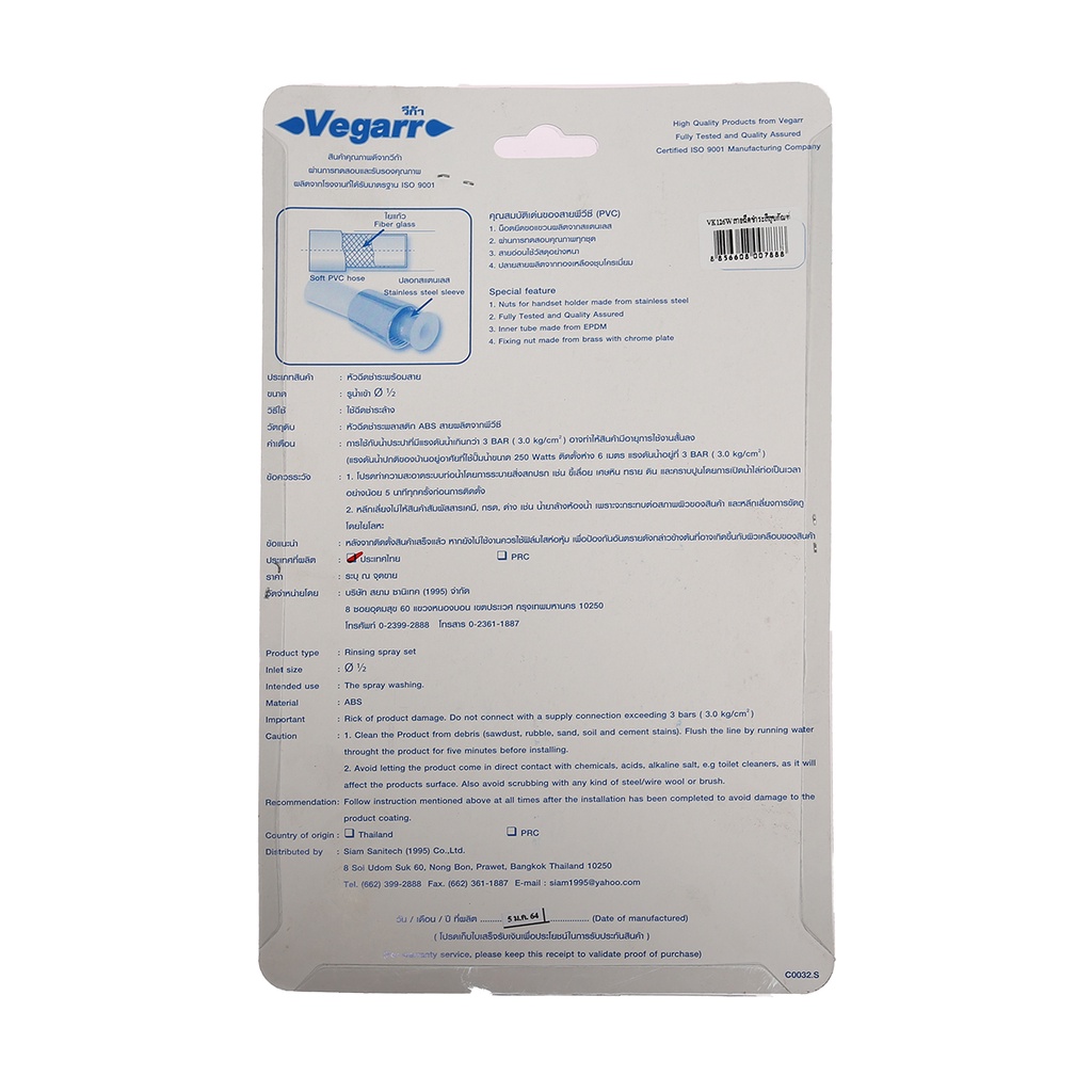 VEGARR ชุดสายฉีดชำระ รุ่น VK126W |ZWF|