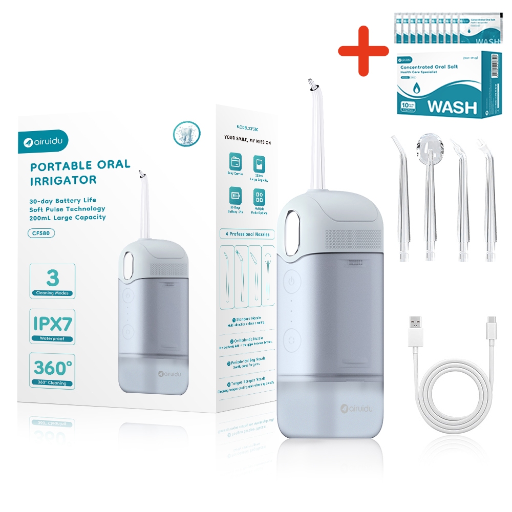 Airuidu CF580 ไหมขัดฟันพลังน้ํา Portable Oral Irrigator Dental Water Flosser IPX7 กันน้ำ Memory Function