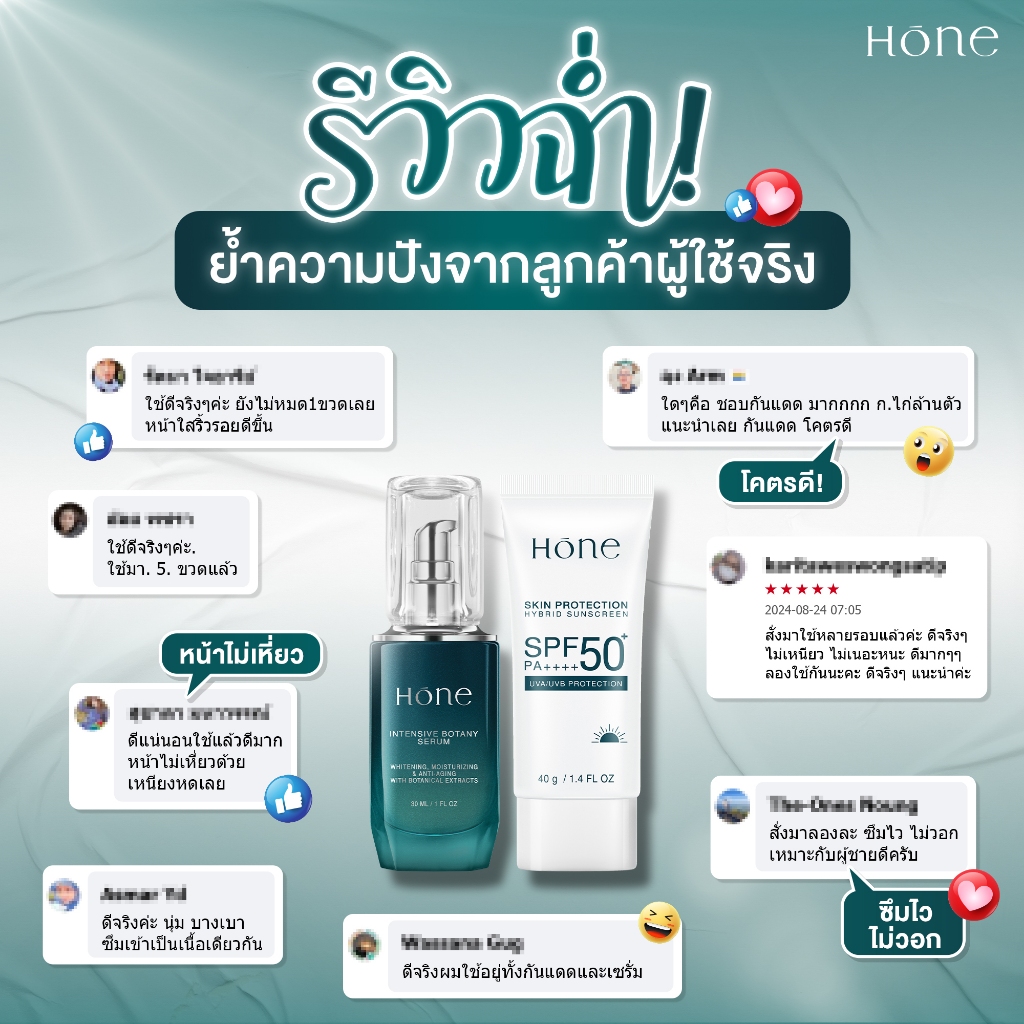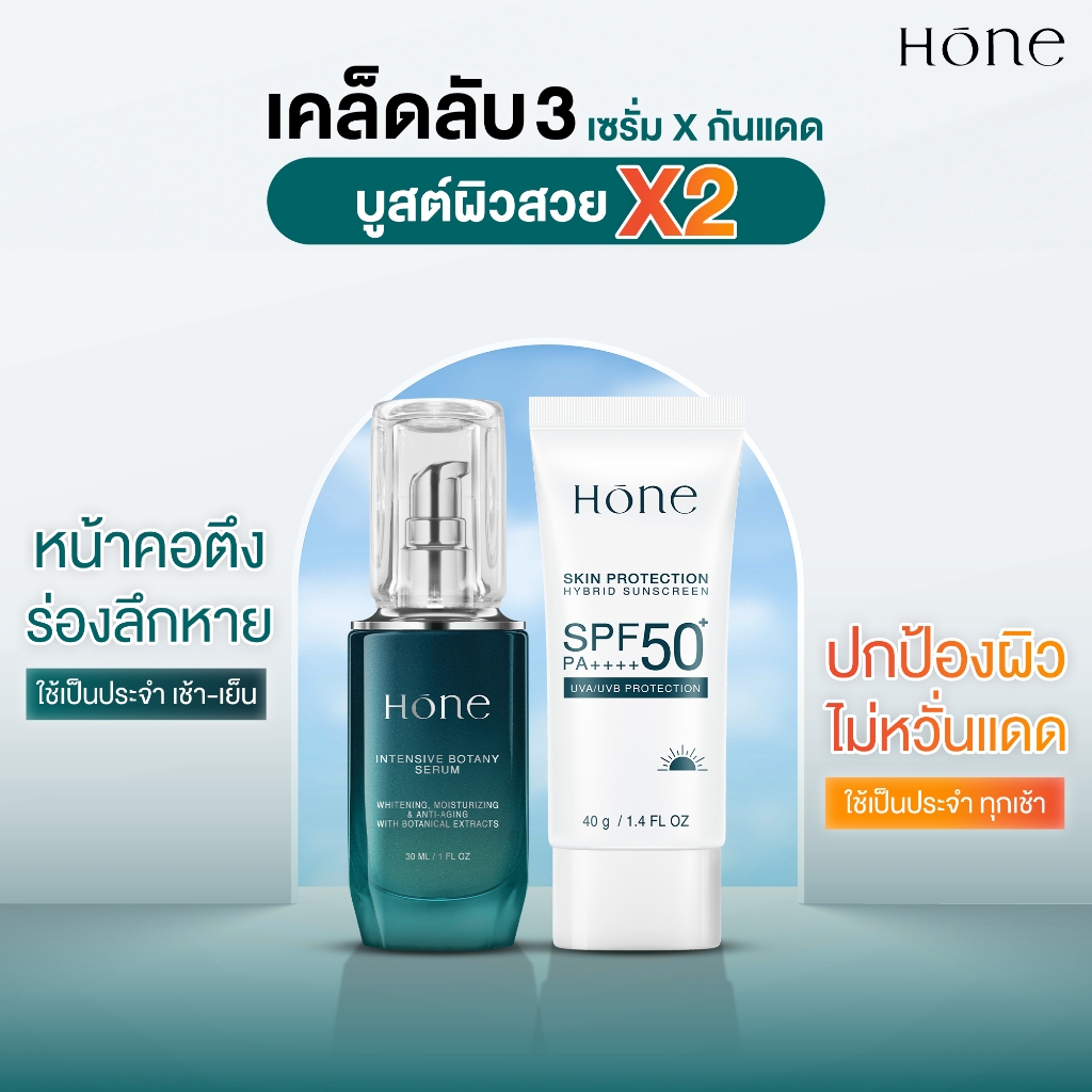 [เซตคู่x2] HONE เซรั่ม 2 ชิ้น 30ml + กันแดด 2 ชิ้น 40g