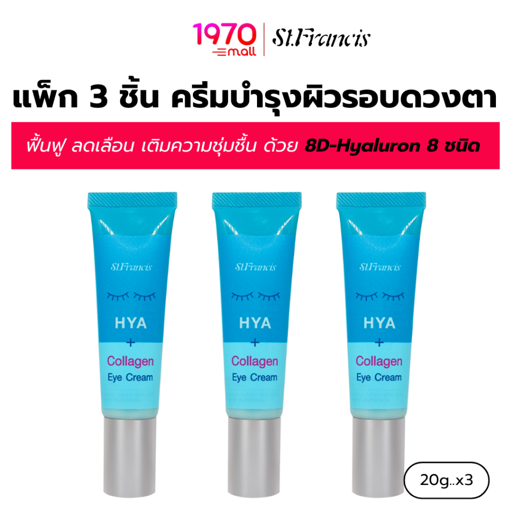 [CLEARANCE] [แพ็ก 3 ชิ้น] ST.FRANCIS ครีมบำรุงใต้ตา HYA+Collagen Eye Cream 20g ฟื้นฟูผิวรอบดวงตา ลดริ้วรอย