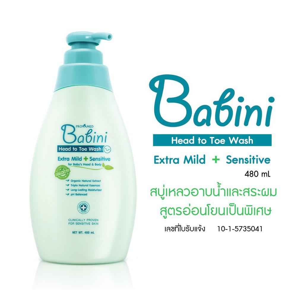 🔥lot ใหม่ พร้อมส่ง🔥 Provamed Babini Head to Toe Wash 480 มล.สบู่เหลวอาบน้ำและสระผม สูตรอ่อนโยนเป็นพิเศษ