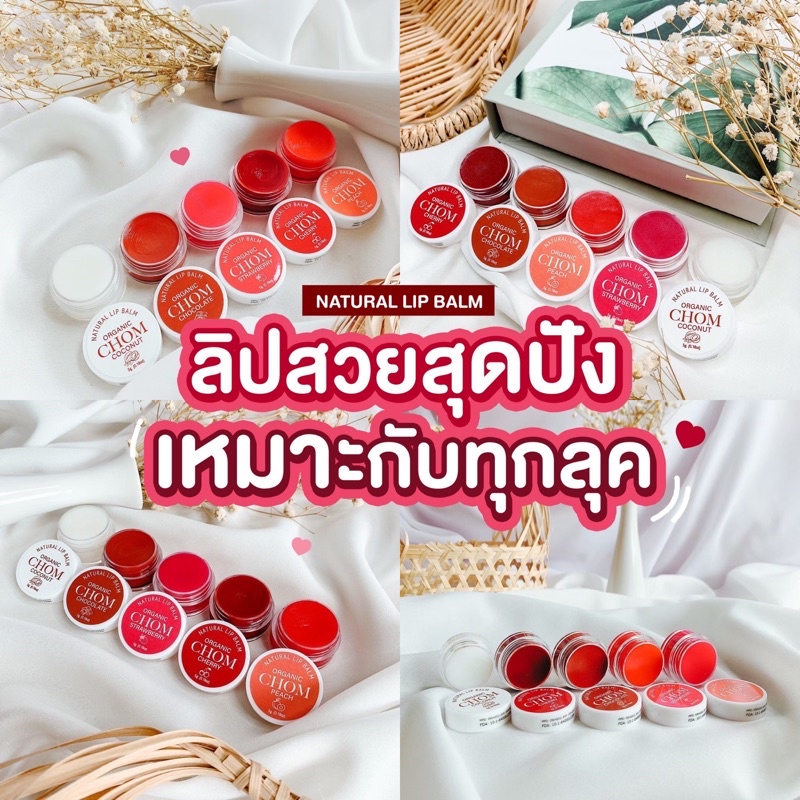 CHOM lip blam (มี 5 เฉดสี) ทาตา แก้ม ปาก ลิปสีสวยติดทน บรัชออน แต่งหน้า ❤️🧡🤎🤍💗