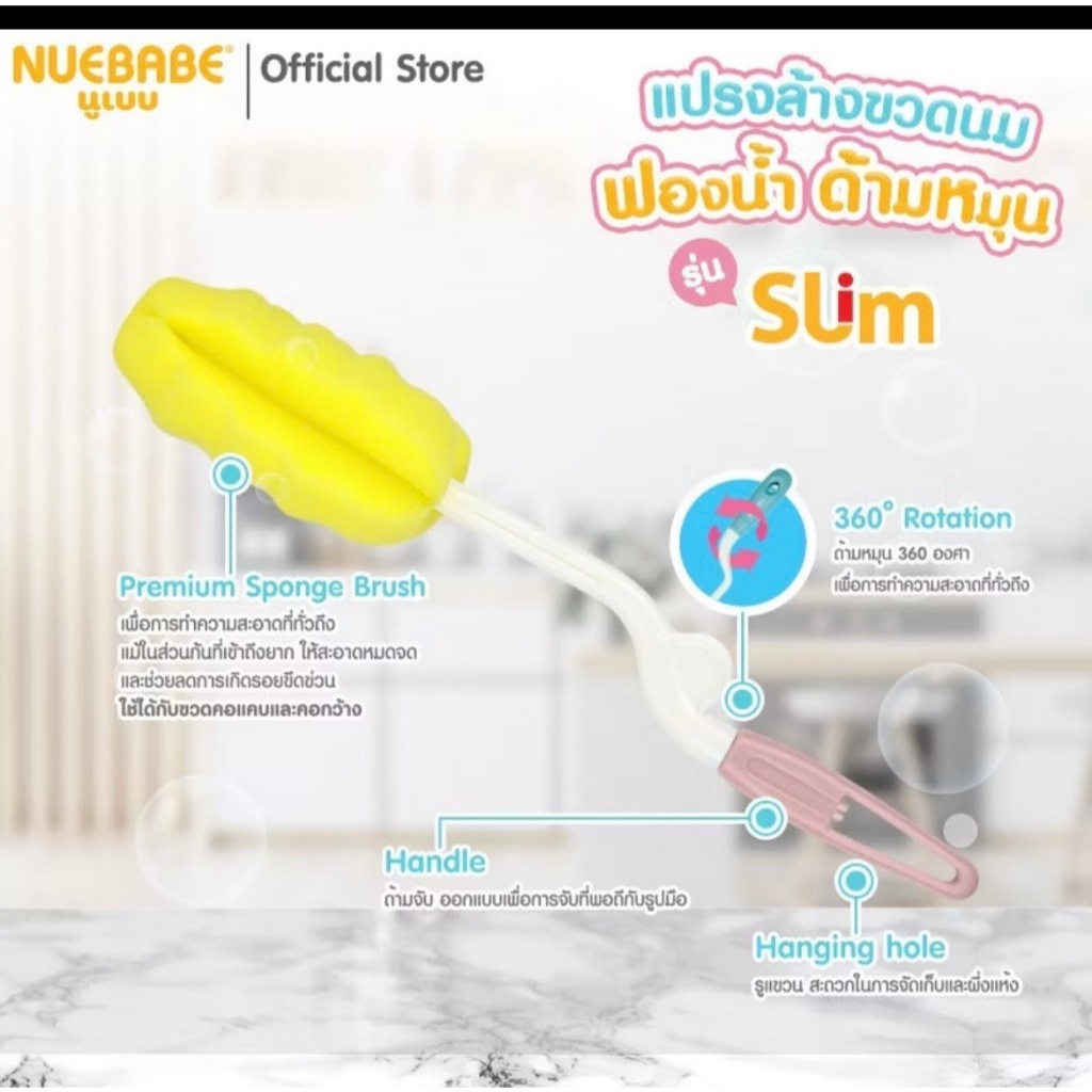 Nuebabe แปรงล้างขวดนมฟองน้ำด้ามหมุนBC0028