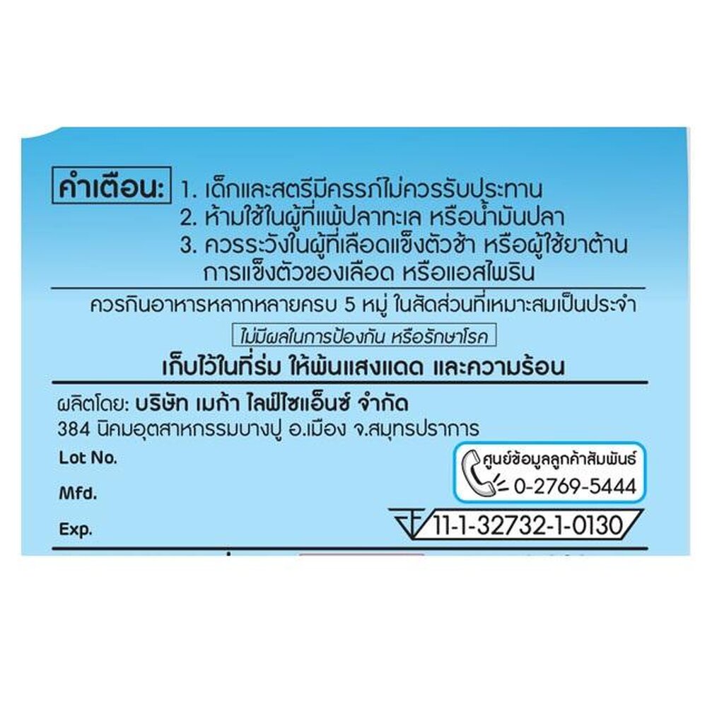 Mega เมก้า วีแคร์ น้ำมันปลา 1000 มก. ขนาด 30 แคปซูล
