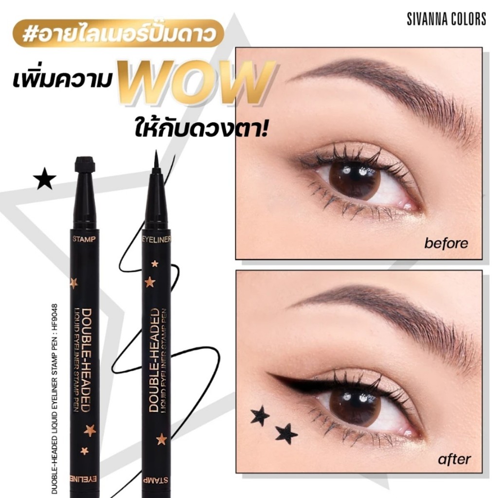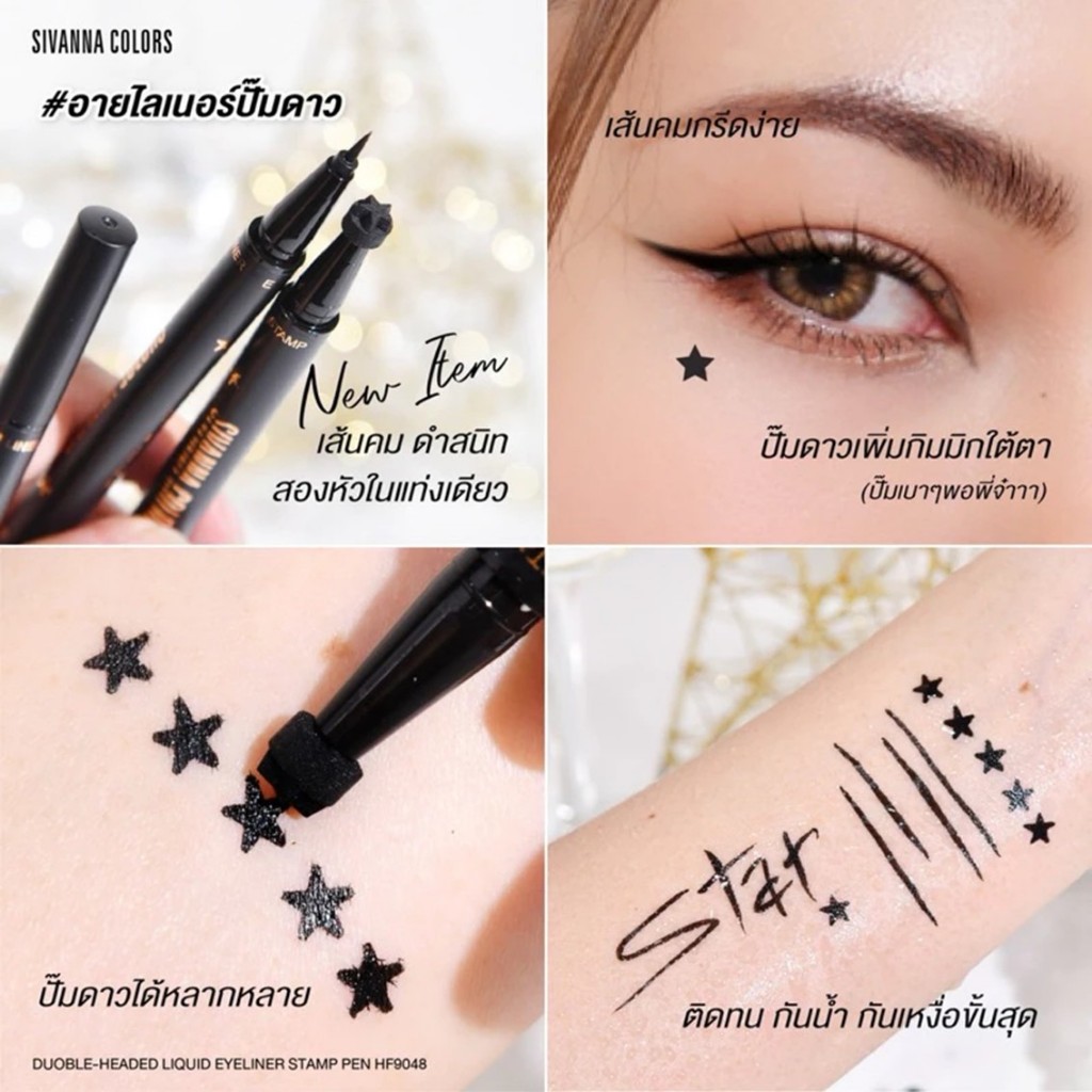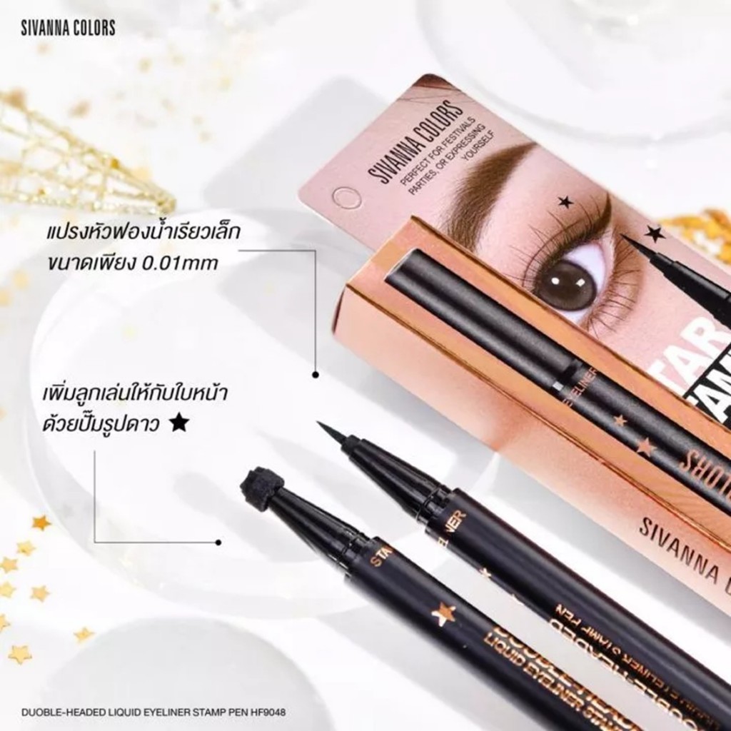 อายไลเนอร์+ปั้มดาว ซีเวนน่า SIVANNA COLORS DOUBLE-HEADED LIQUID EYELINER STAMP PEN HF9048 ขนาด 1 g