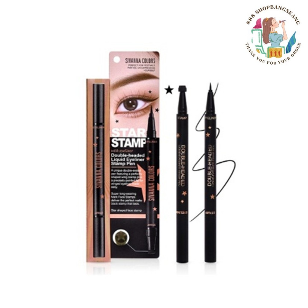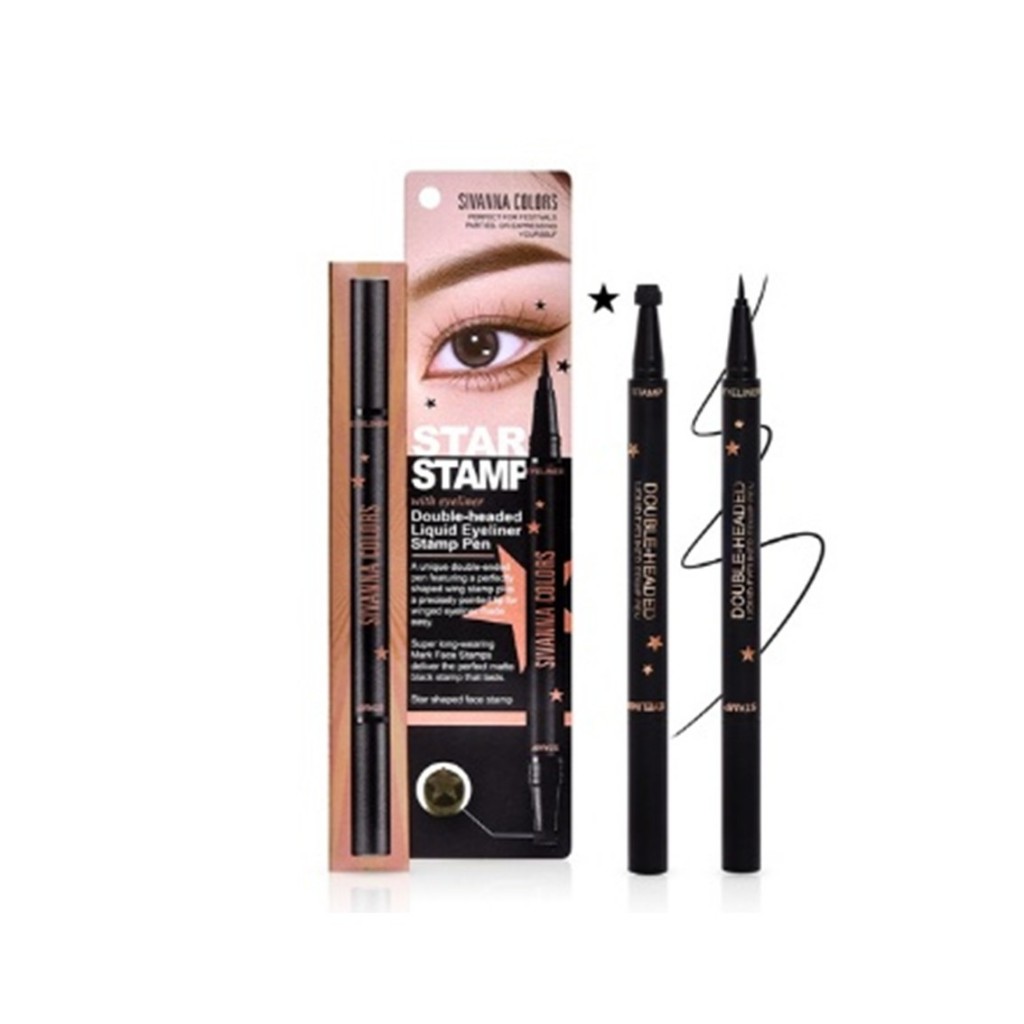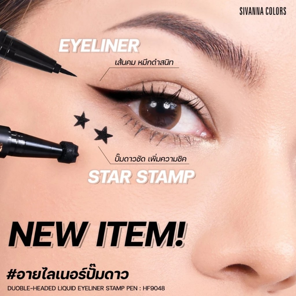 อายไลเนอร์+ปั้มดาว ซีเวนน่า SIVANNA COLORS DOUBLE-HEADED LIQUID EYELINER STAMP PEN HF9048 ขนาด 1 g