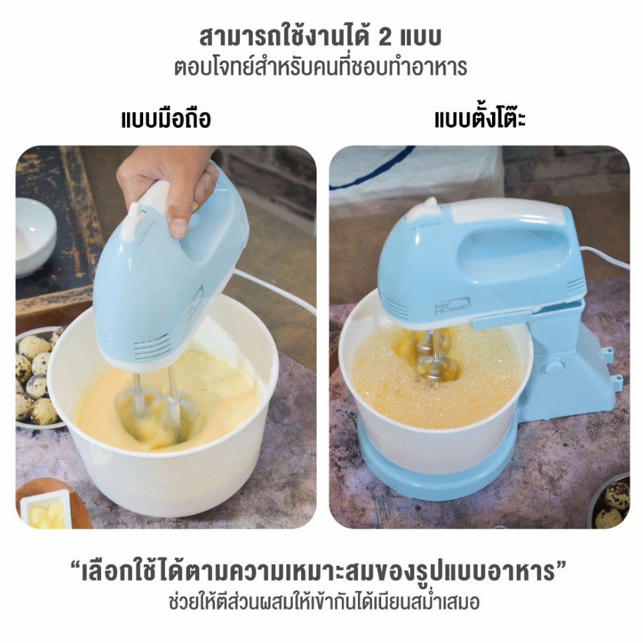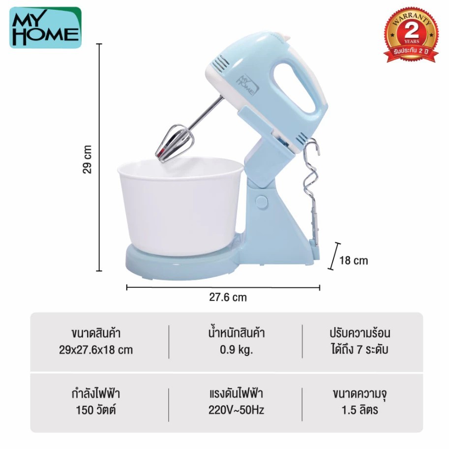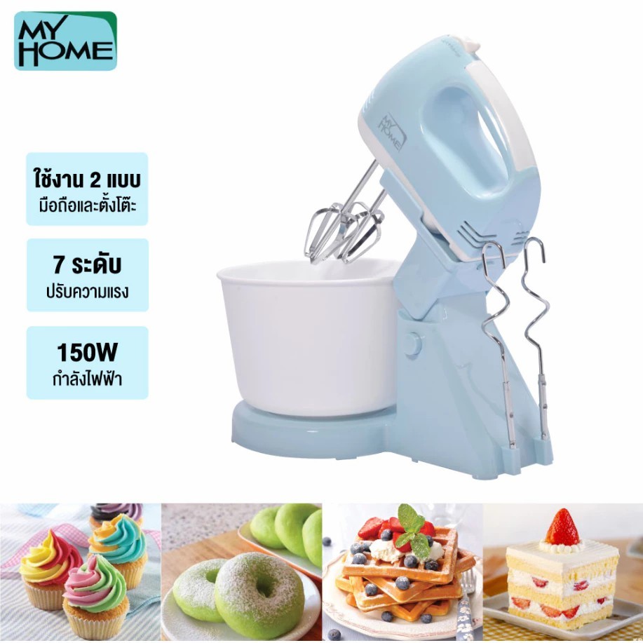 MY HOME เครื่องผสมอาหาร ผสมเค้ก 1.5 ลิตร รุ่น HM-104 ปรับได้ 7 ระดับ รับประกัน 2 ปี