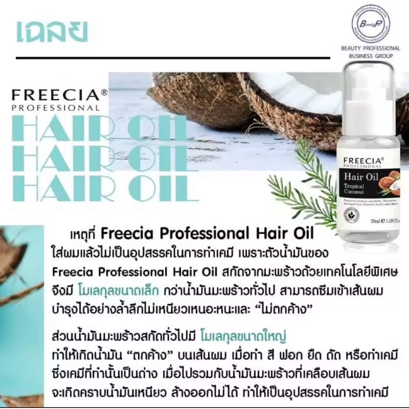 🌴🥥🌴 ฟรีเซีย แฮร์ ออยล์ Freecia Hair oil 50ml เซรั่มบำรุง ผมแห้งเสีย ขาดน้ำหนัก กลิ่นมะพร้าวหอมสดชื่น