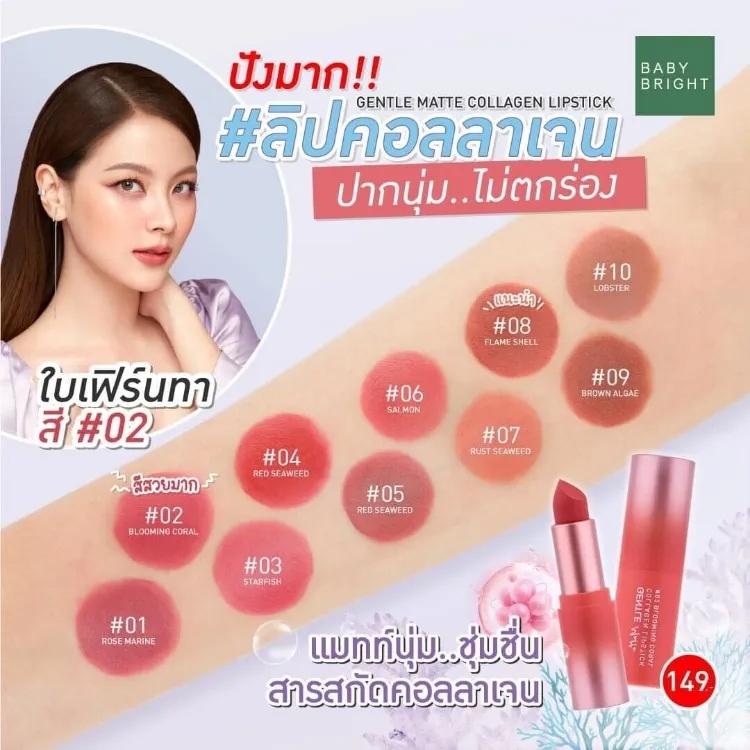 (1 แท่ง) Baby Bright เจนเทิลแมทท์คอลลาเจนลิปสติก #06 แซลมอน (3.7 g.)