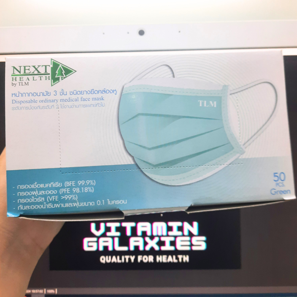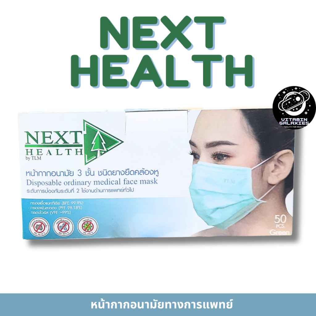 Next Health หน้ากากอนามัย 3 ชั้น สีเขียว (50 ชิ้น/กล่อง)