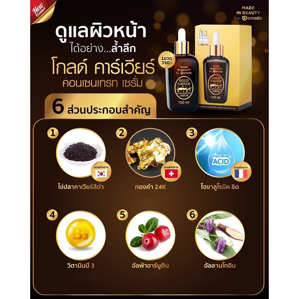 Amado Gold Caviar Serum " Pack 3 ขวด " โกลด์คาเวียร์ เซรั่ม ( 100ml x3 ) เซรั่ม