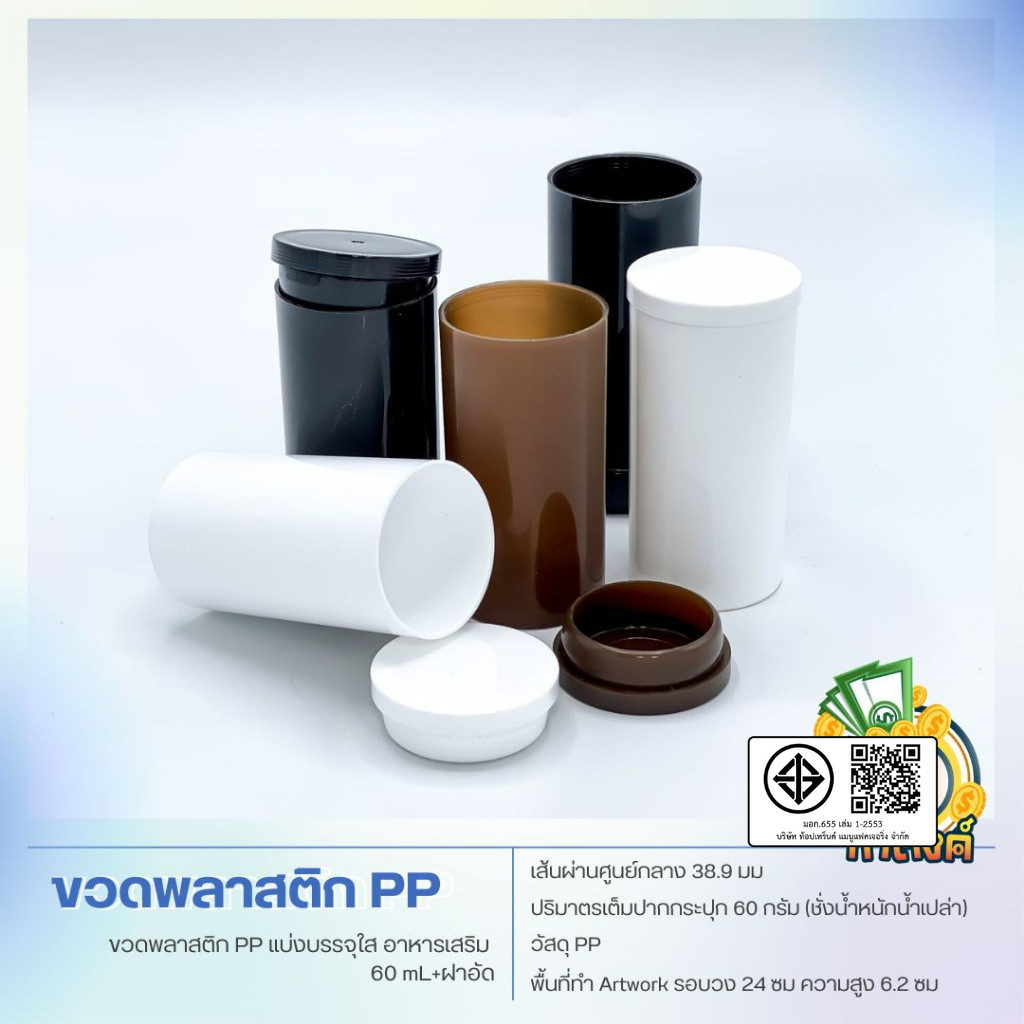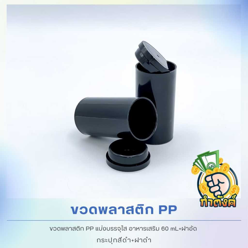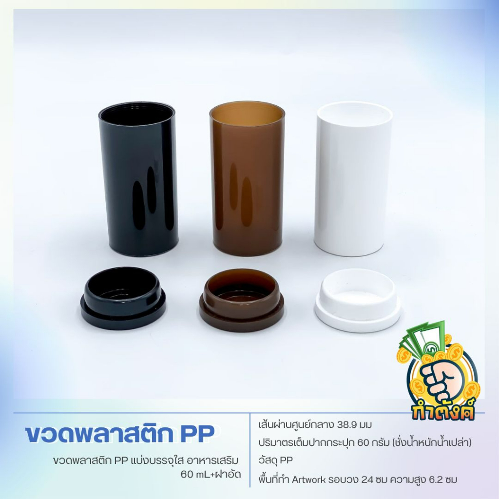 กระปุกยาเม็ด 60ml.+ฝาอัด สีขาว สีดำ สีชา by กำตังค์