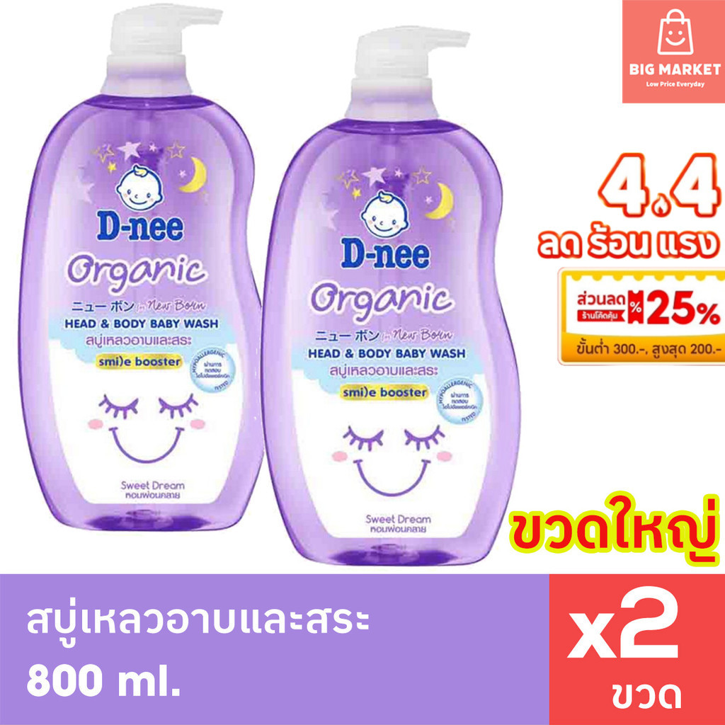 แพคคู่ขวดใหญ่ Dnee ดีนี่สบู่เหลวอาบสระเด็กแรกเกิด ดีนี่ ออร์แกนิค 750ml 2ขวด สบู่เหลวอาบน้ำนิวบรอน D-nee สวีทดรีม สีม่วง