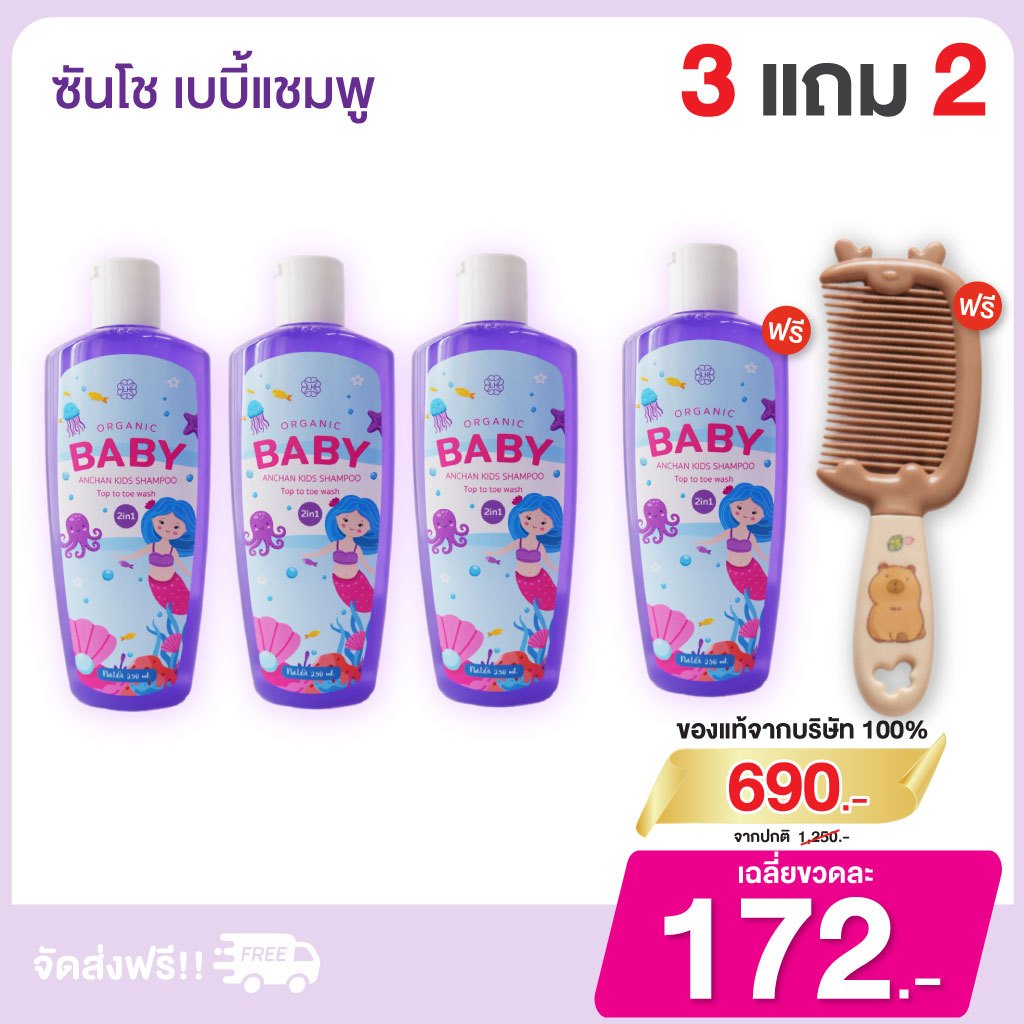 Sansho shampoo ซันโช เบบี้ แชมพู เร่งผมยาวx3 ผมดกดำ สุขภาพดี ลดคันหนังศรีษะ ของแท้พร้อมส่งฟรี