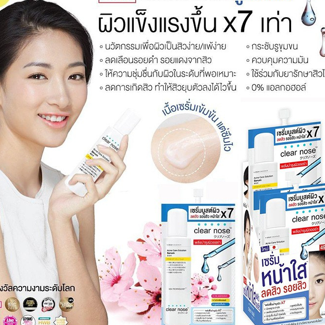 เซรั่มบูสต์ผิว ลดสิว x7 เคลียร์โนส แอคเน่ แคร์ โซลูชั่น Clear nose Acne Care Solution Serum 8 กรัม