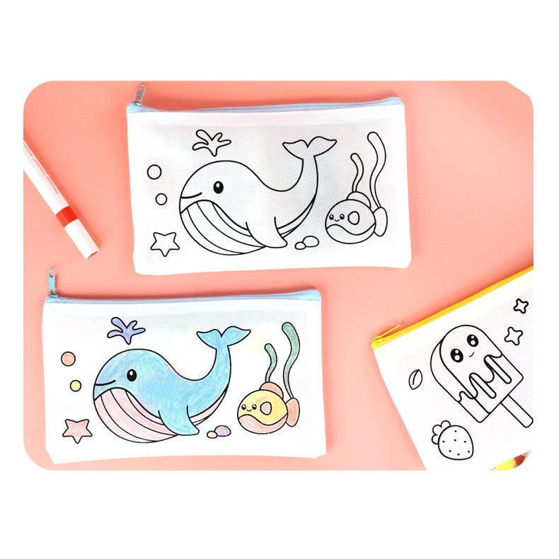💕กระเป๋าดินสอ สำหรับวาดลายเองตามจินตนาการ [ขนาด22.8cm*12.7cm]🎨✨กระเป๋าดินสอผ้าระบายสี ของขวัญวันเด็ก งานกิจกรรม DIY