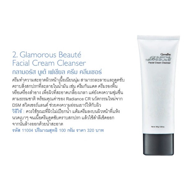 ครีมล้างหน้า กิฟฟารีน กลามอรัส บูเต้ เฟเชียล ครีม คลีนเซอร์ Glamorous Beaute Facial Cream Cleanser