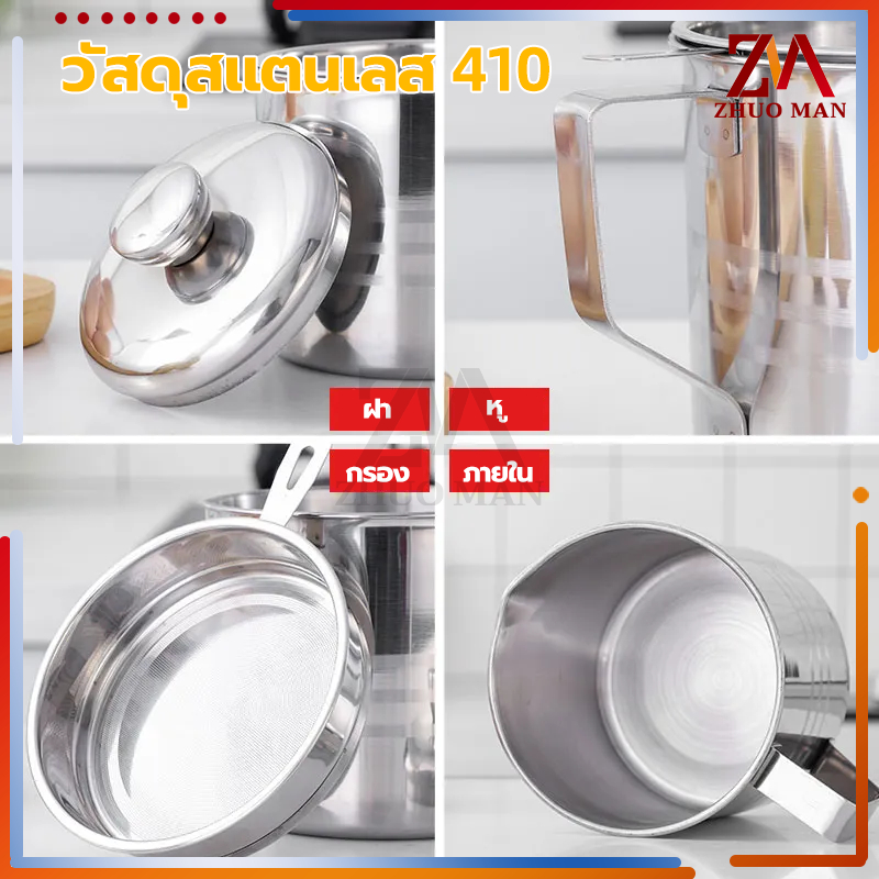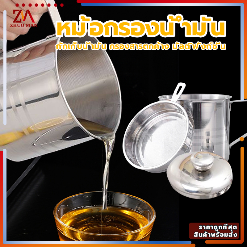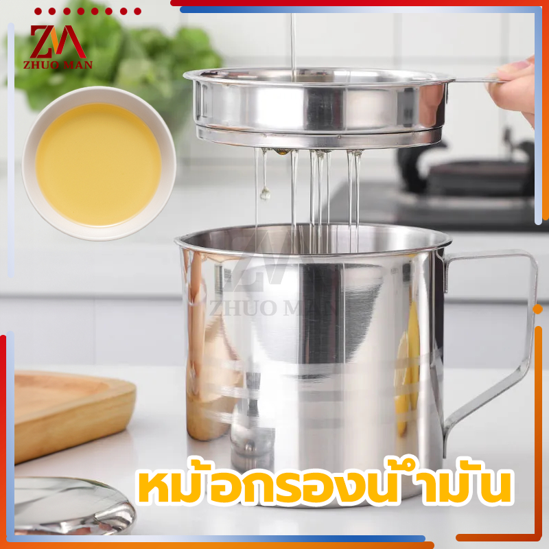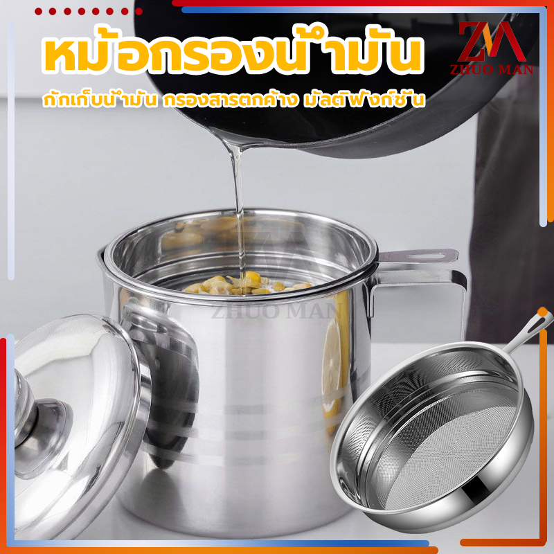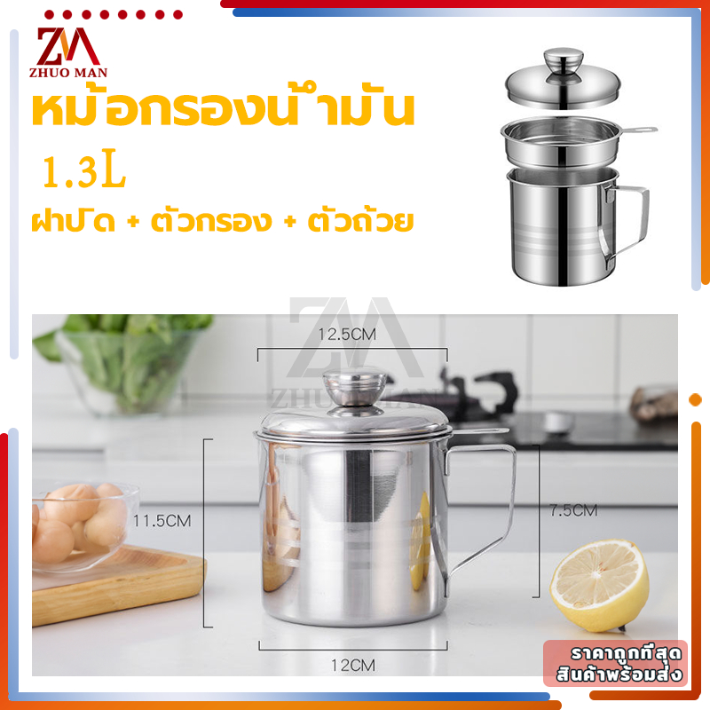 หม้อกรองน้ำมัน ที่กรองน้ำมัน สเตนเลส304 ความจุ 1.3L พร้อมตะแ กรงกรอง มีฝาปิดและที่จับ ทนความร้อนได ไม่เป็นสนิม