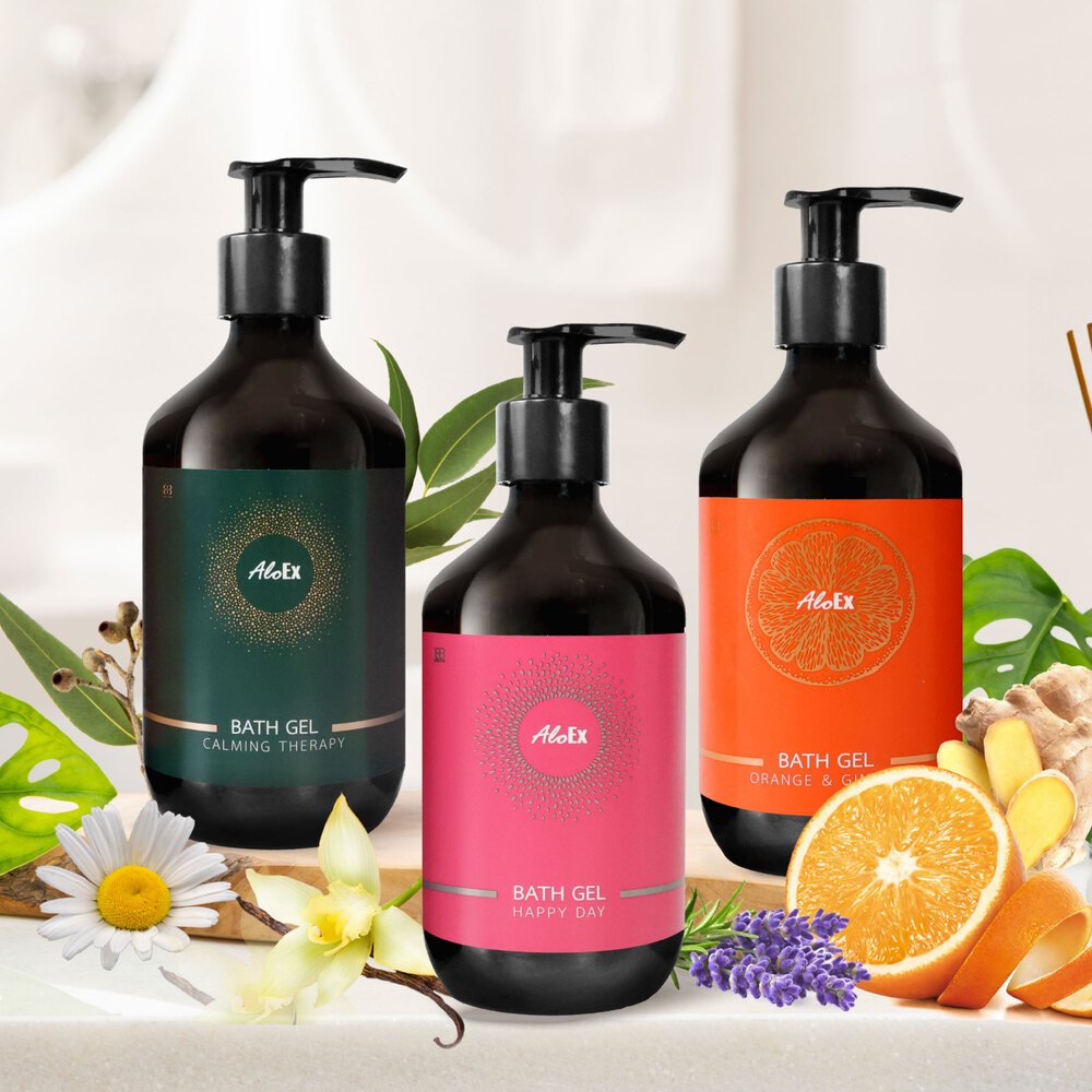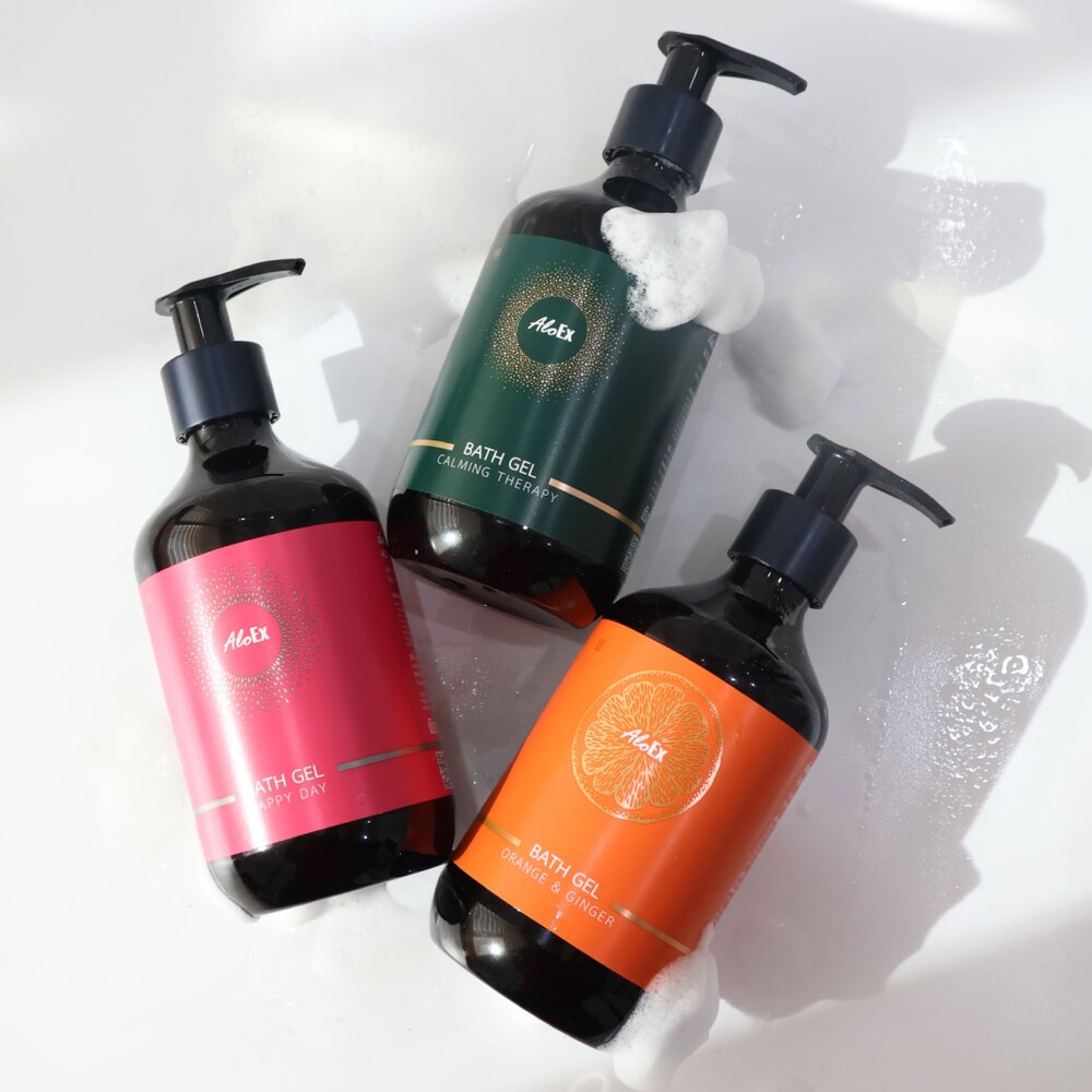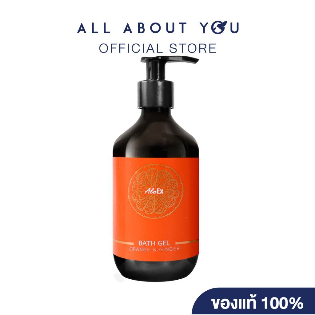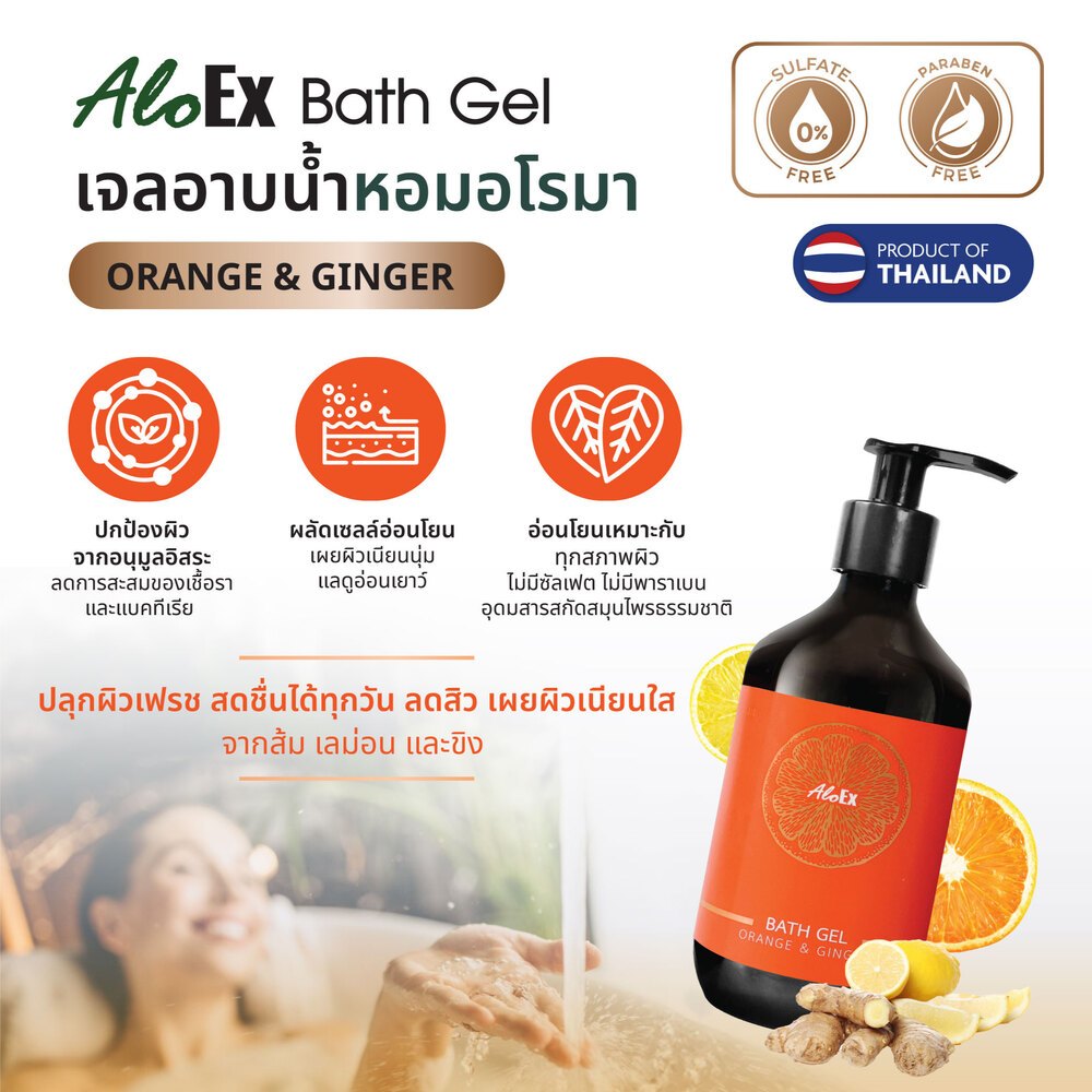 อโลเอ็กซ์ เจลอาบน้ำหอมอโรมา กลิ่นออเรนจ์ แอนด์ จินเจอร์ AloEx Bath gel, Orange & Ginger scent ขานด 295 ml.