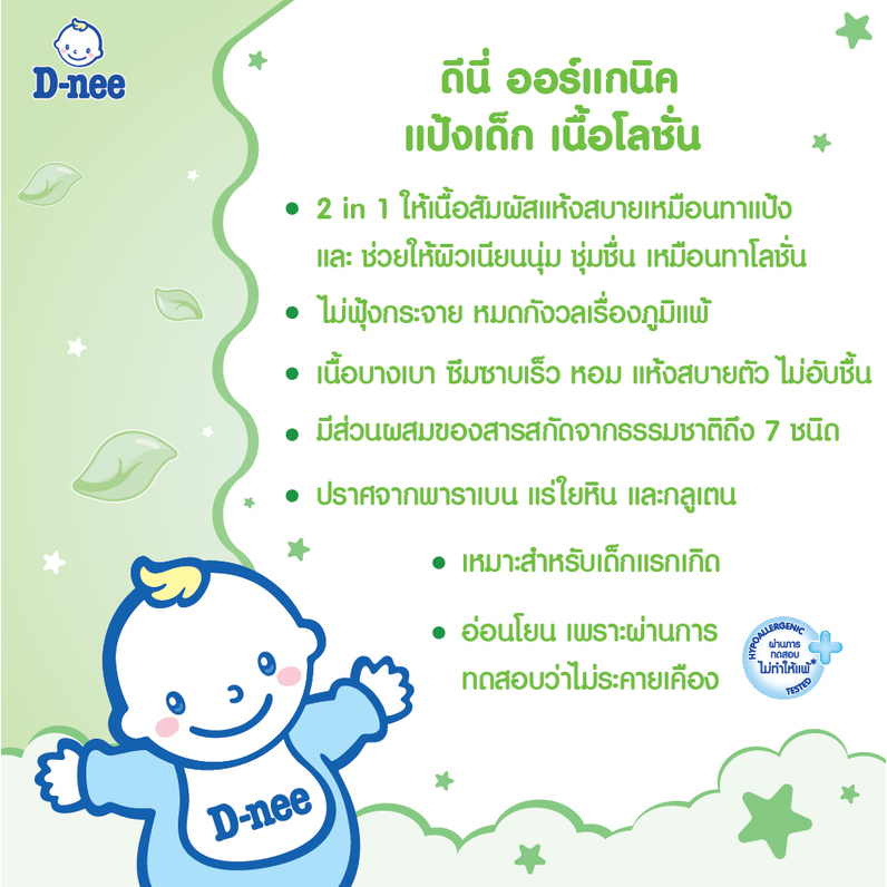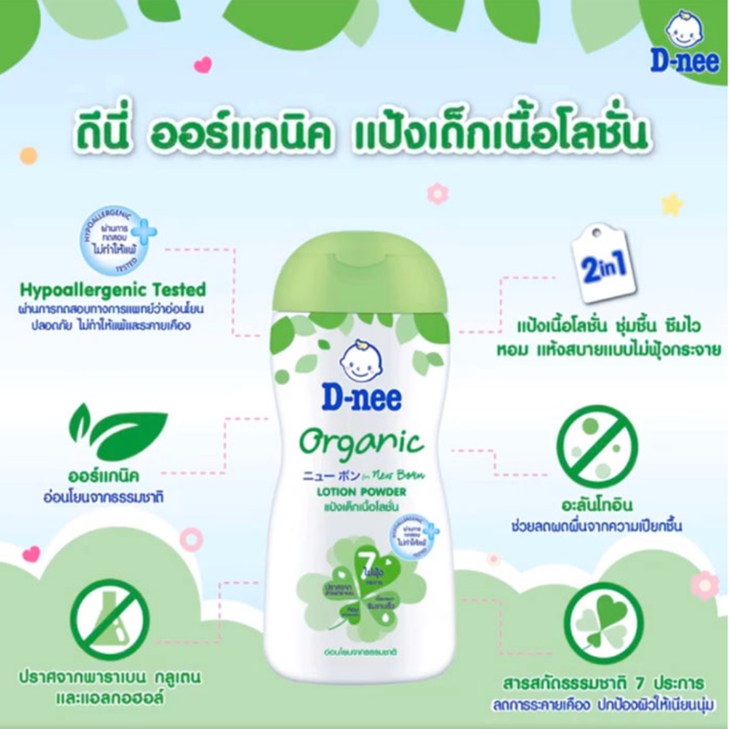 D-nee Organic ดีนี่ เพียว แป้งเด็กเนื้อโลชั่น ออร์แกนิค (180 มล.)