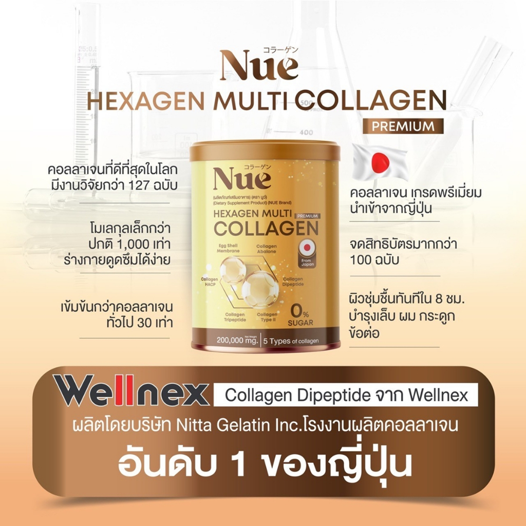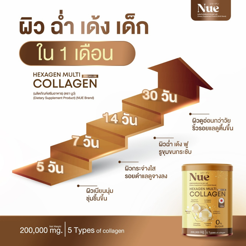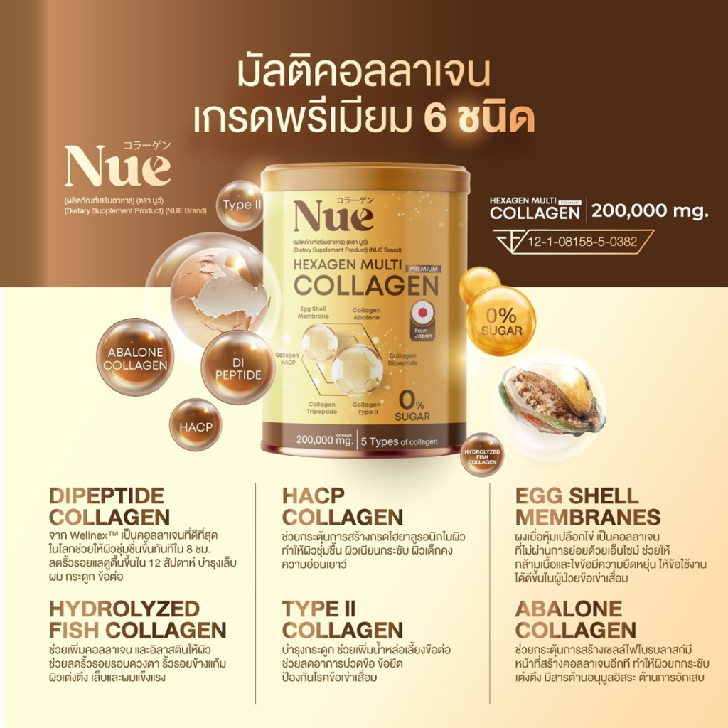 Nue Collagen มัลติคอลลาเจน เกรดพรีเมียม 6 ชนิด และ 5 นวัตกรรมสารสกัดระดับโลก ชะลอวัยระดับ DNA