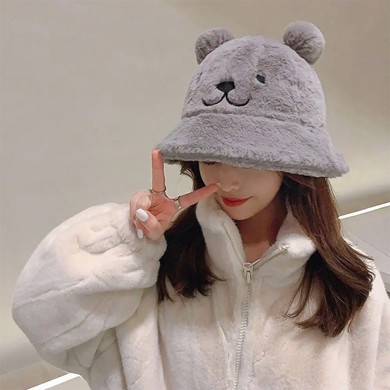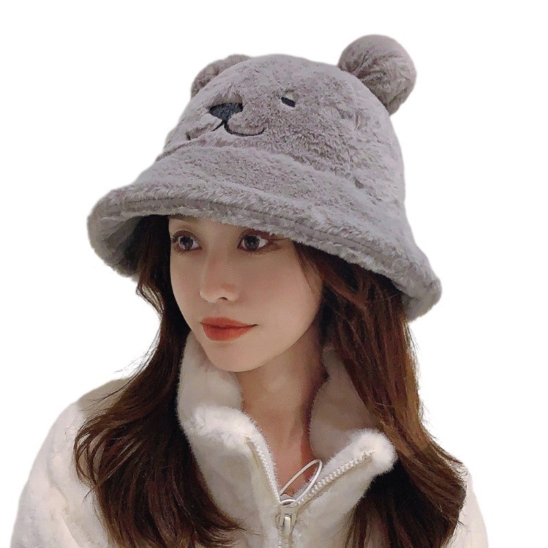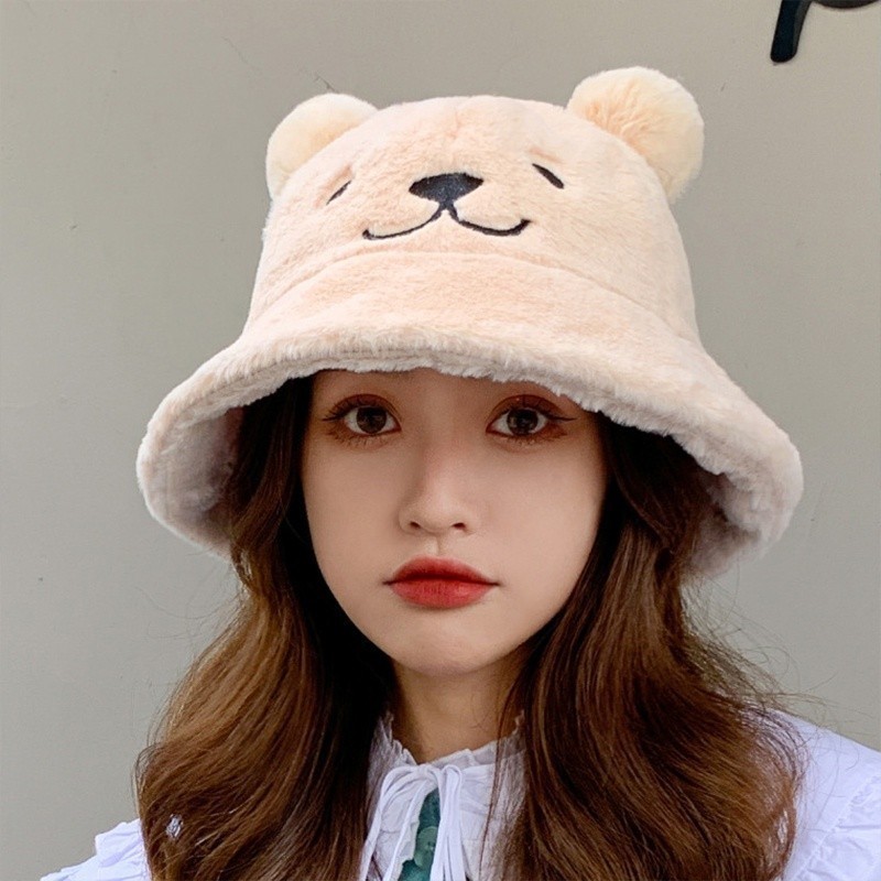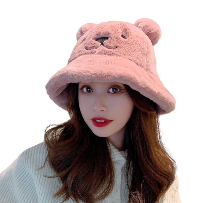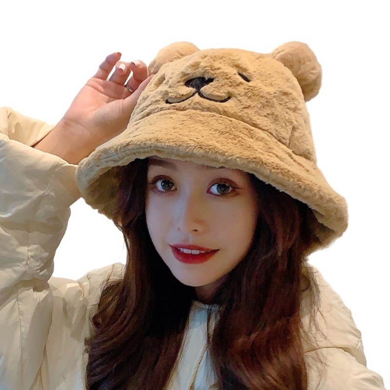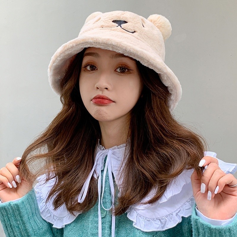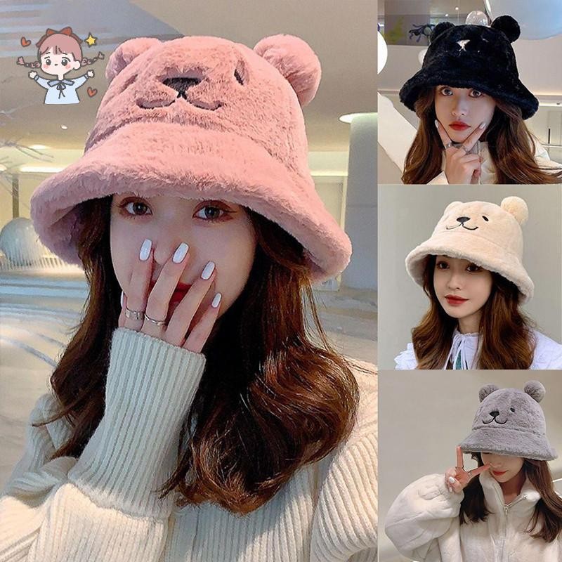 ฤดูใบไม้ร่วงและฤดูหนาวของผู้หญิงหมวกชาวประมงหูหมวกขนยาว หมวกอ่างล้างหน้าหนาที่อบอุ่นและปุยนุ่ม