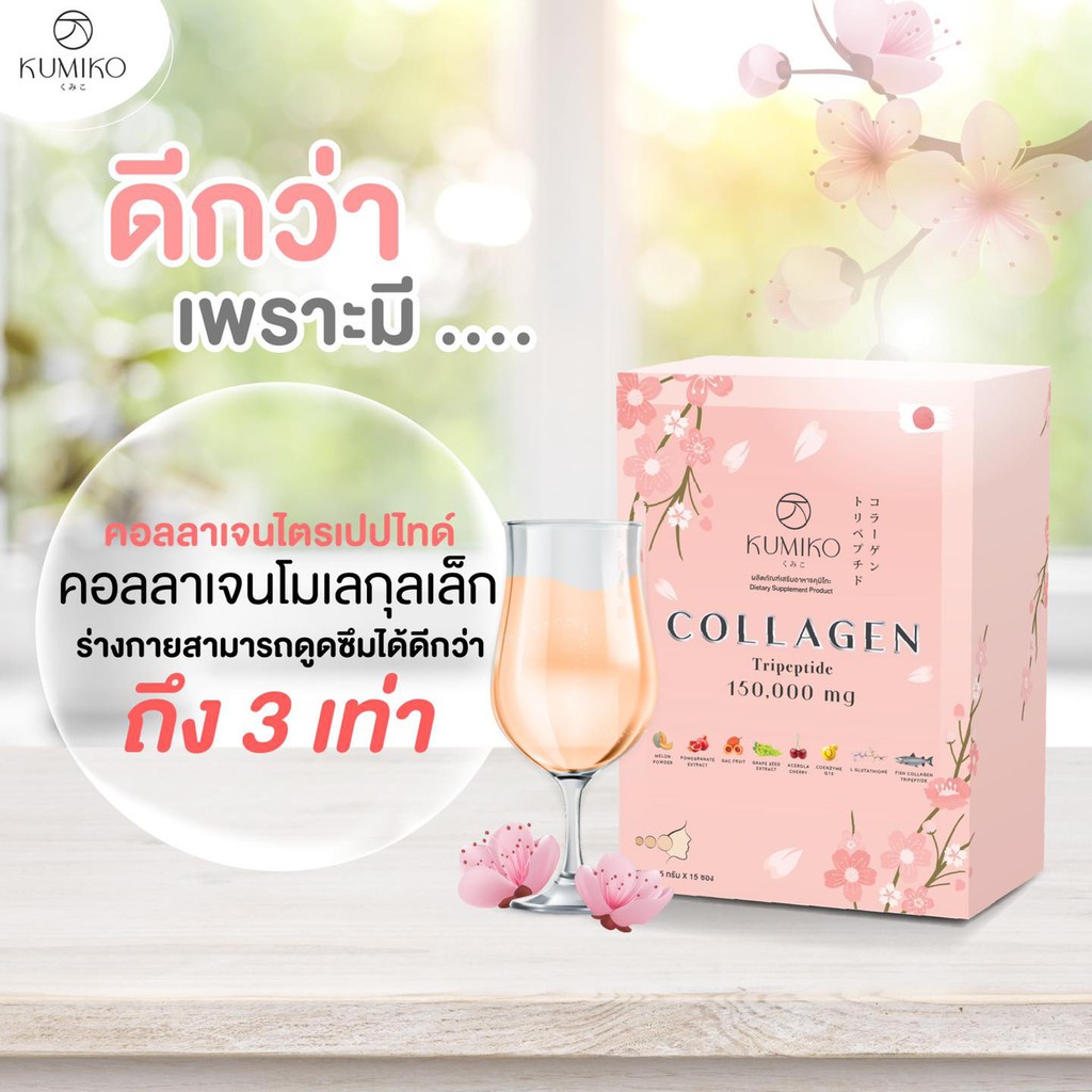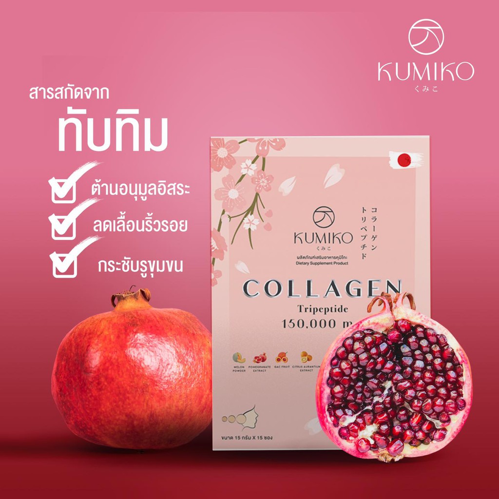 KUMIKO Collagen Premium คุมิโกะ คอลลาเจน สเต็มเซลล์ จากปลาแซลมอน 1 กล่อง [ 15 กรัมx15 ซอง ]