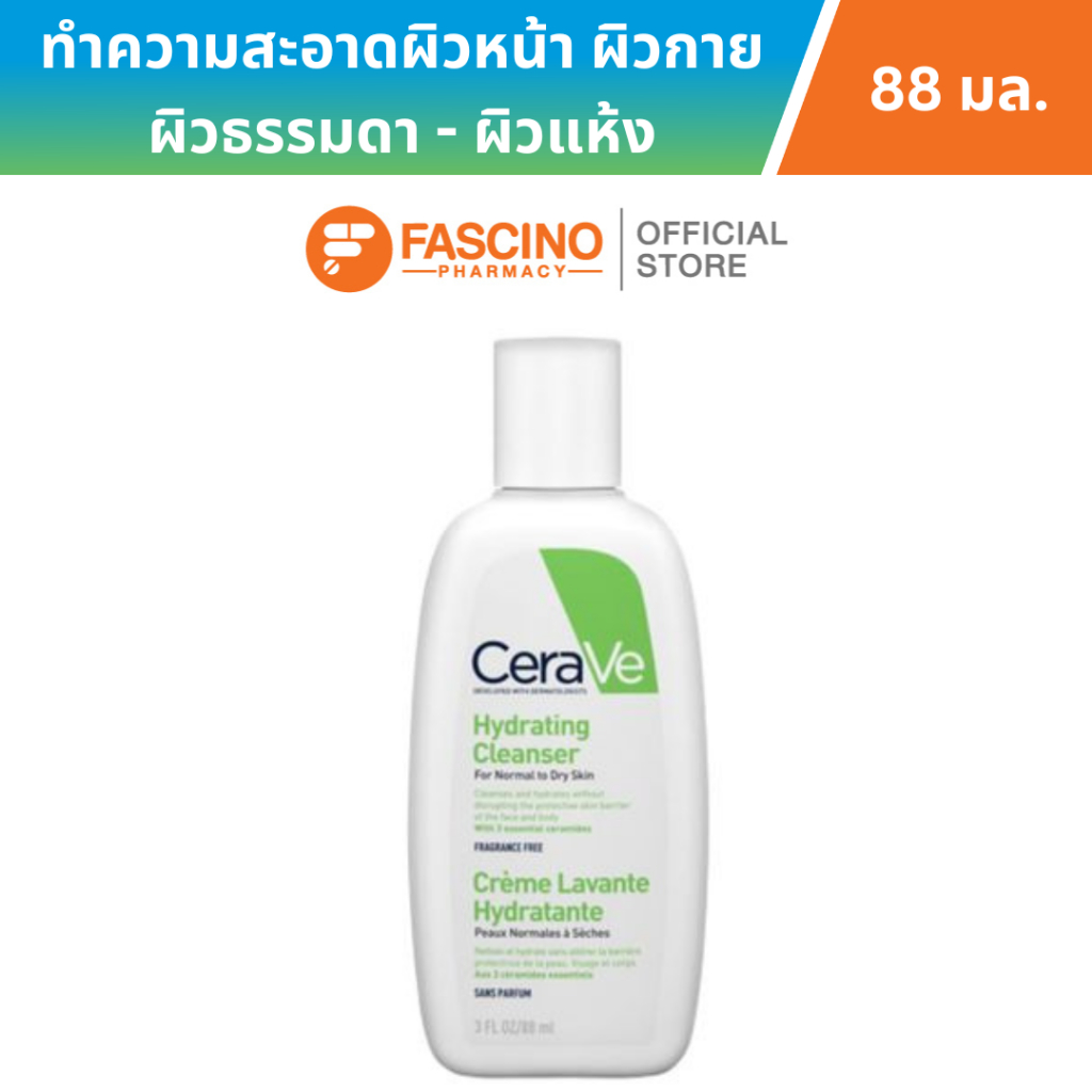 CeraVe Hydrating Cleanser ผลิตภัณฑ์ทำความสะอาดผิวหน้าและผิวกาย สูตรสำหรับผิวธรรมดา - ผิวแห้ง (88 มล.)