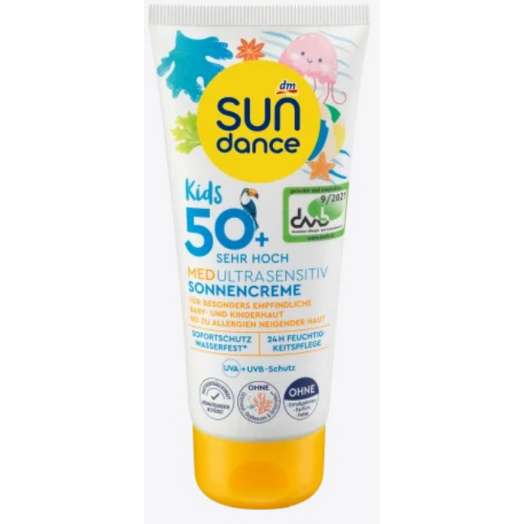 ครีมกันแดดเด็ก และทารกสำหรับผิวบอบบาง แพ้ง่าย(กันแดด+กันน้ำได้)จากเยอรมัน Sundance Sonnencreme Kids SPF50+