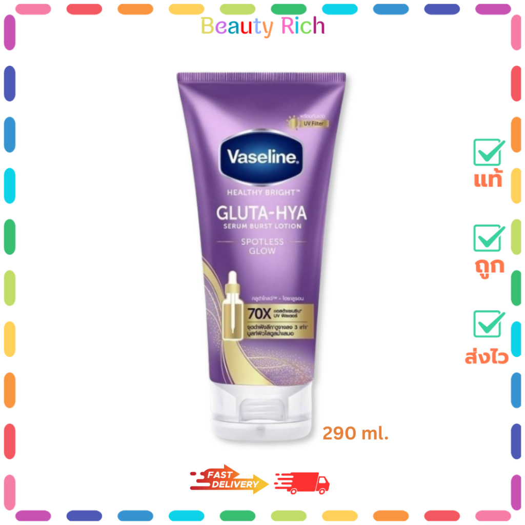 (1 หลอด)Vaseline Gluta-Hya Spotless Glow (สีม่วง) วาสลีน กลูต้า-ไฮยา เบิสท์ สปอตเลส โกลว์(290 ml.)
