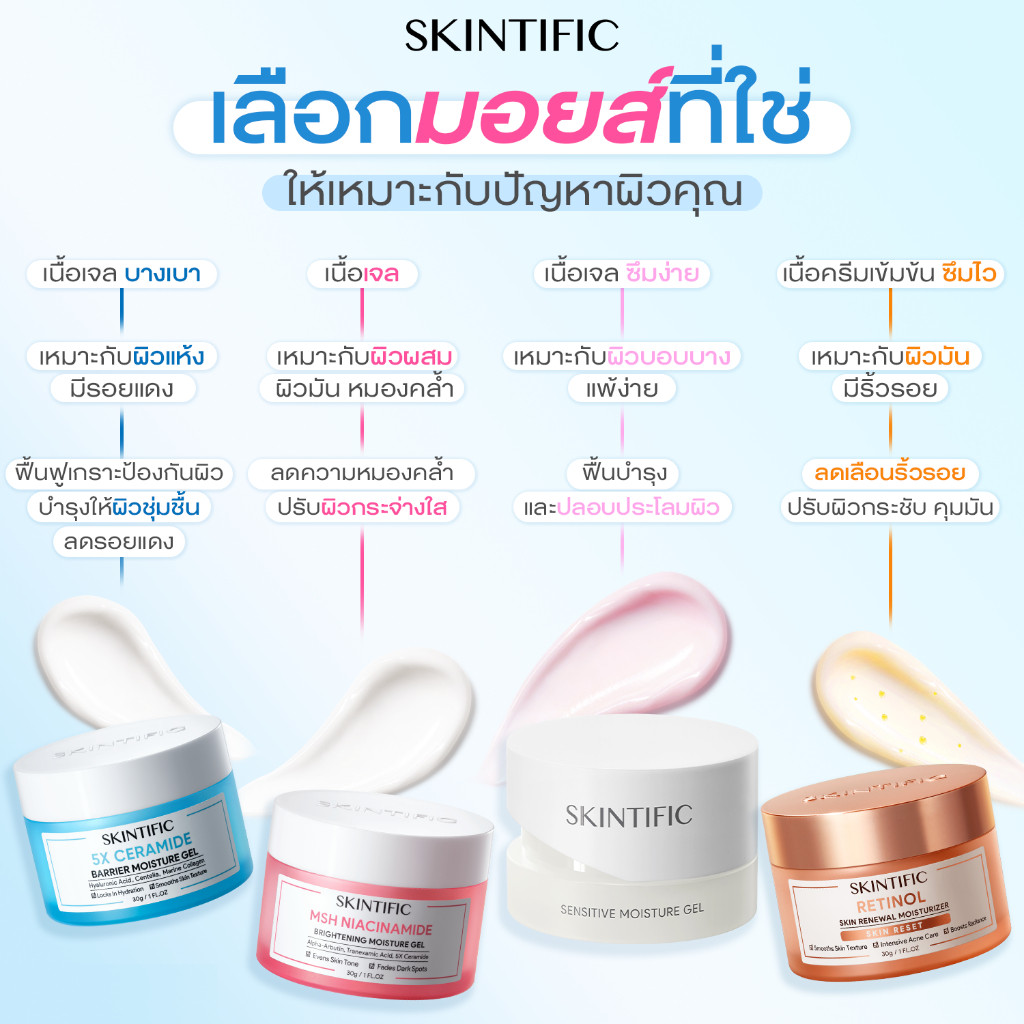 SKINTIFIC มอยเจอร์ไรเซอร์ ครีม ครีมบำรุงผิวหน้า Moisturizer Gel ช่วยบำรุงและเสริมเกราะป้องกันใบหน้า ครีมทาหน้า ครีมขาว