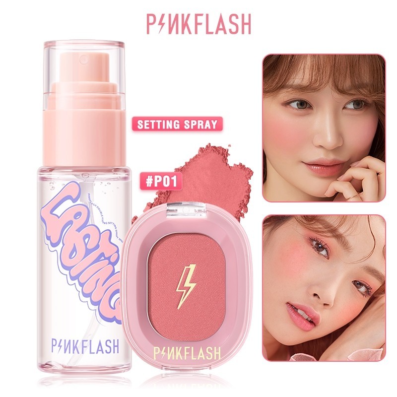 Pinkflash 2 ชิ้น Blush + Setting Spray Beginner Long-Lasting Face Makeup Set