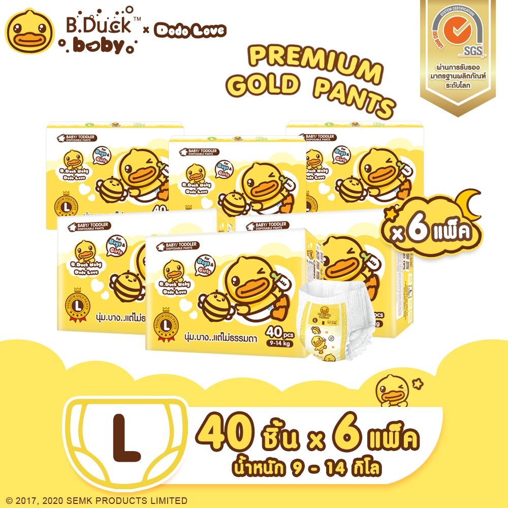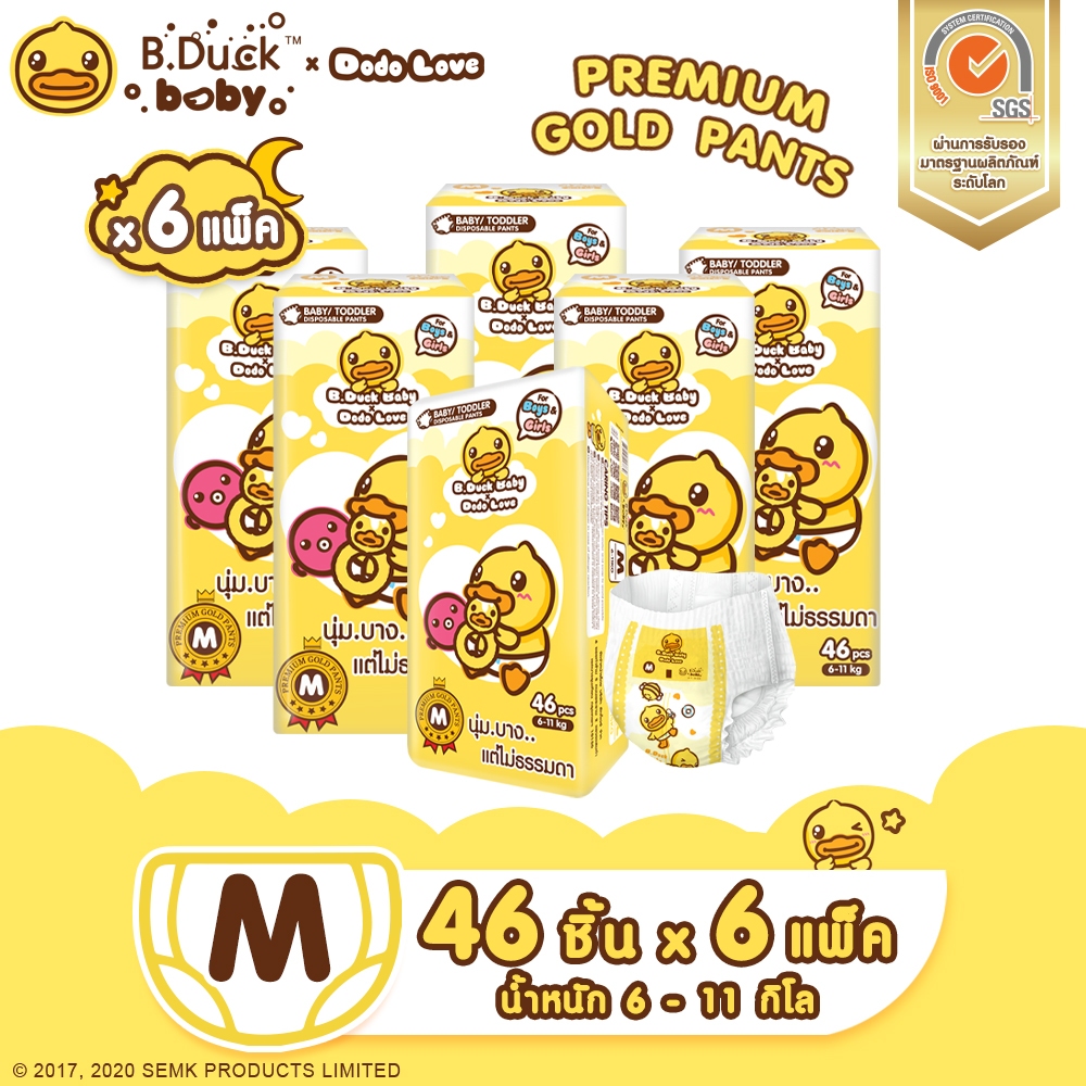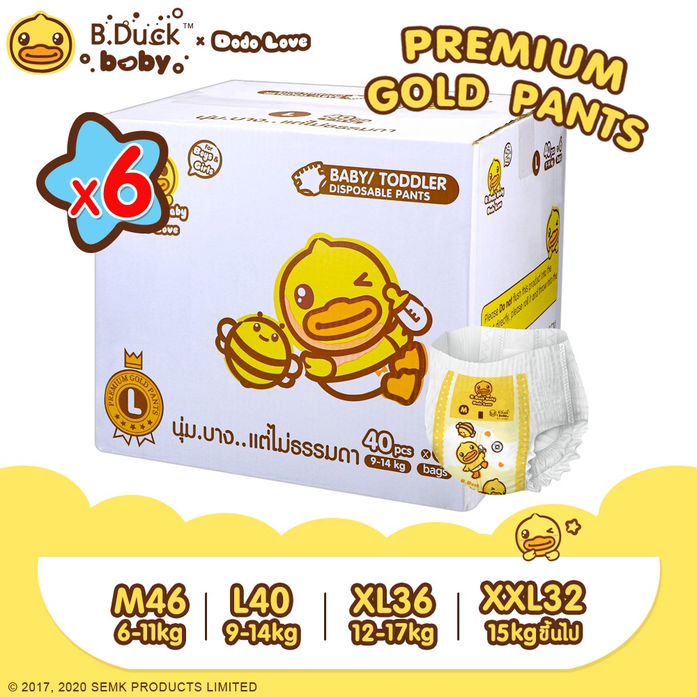 [ยกลัง6] DODOLOVE X B.Duck Baby Premium Gold Pants กางเกงผ้าอ้อม S-XXL นุ่มบาง