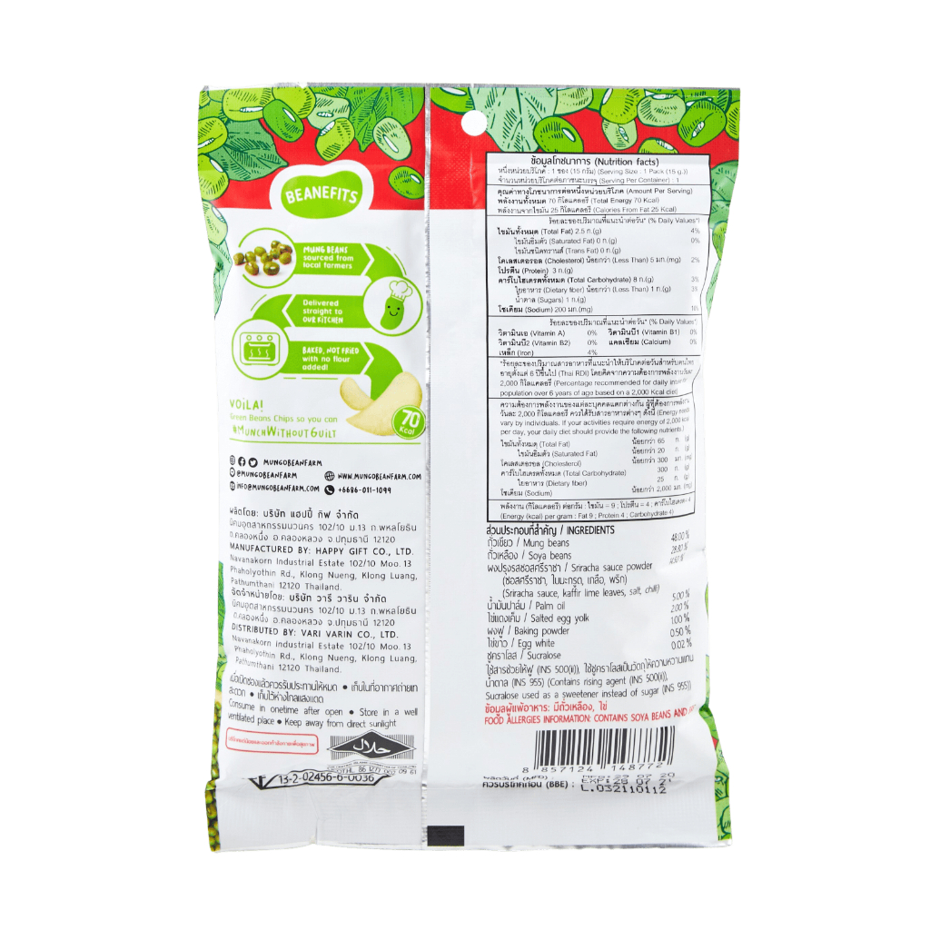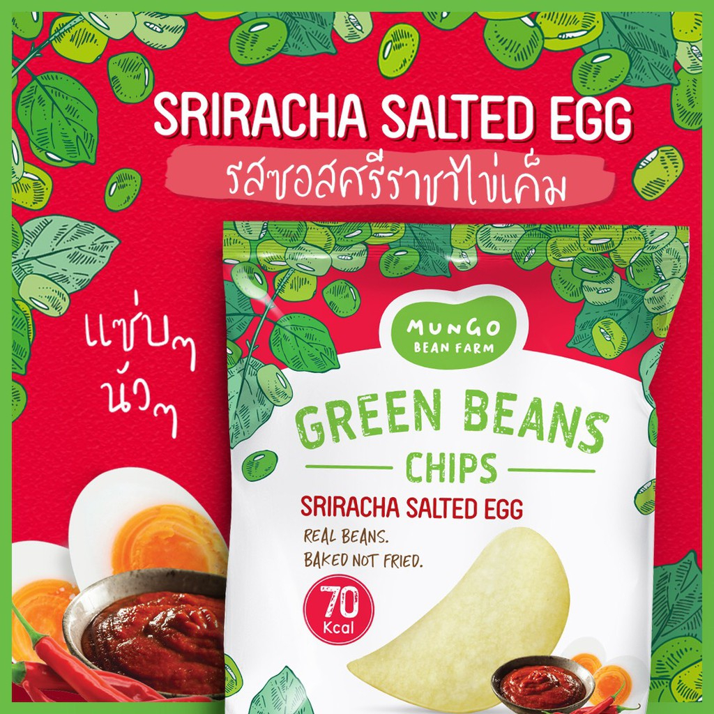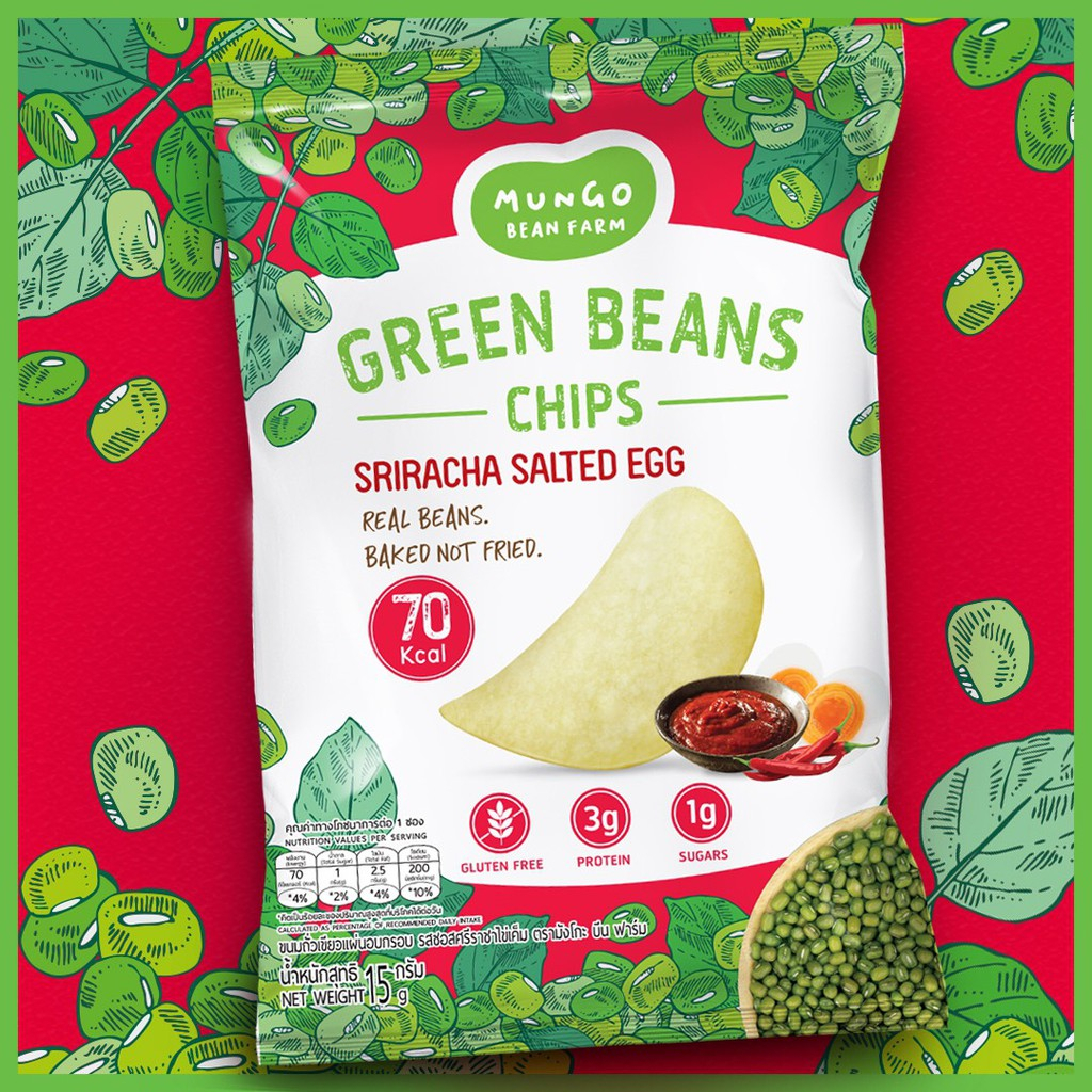 Mungo Bean Farm - Sriracha & Salted Egg ถั่วเขียวแผ่นอบกรอบ รสซอสศรีราชา & ไข่เค็ม (15 g)