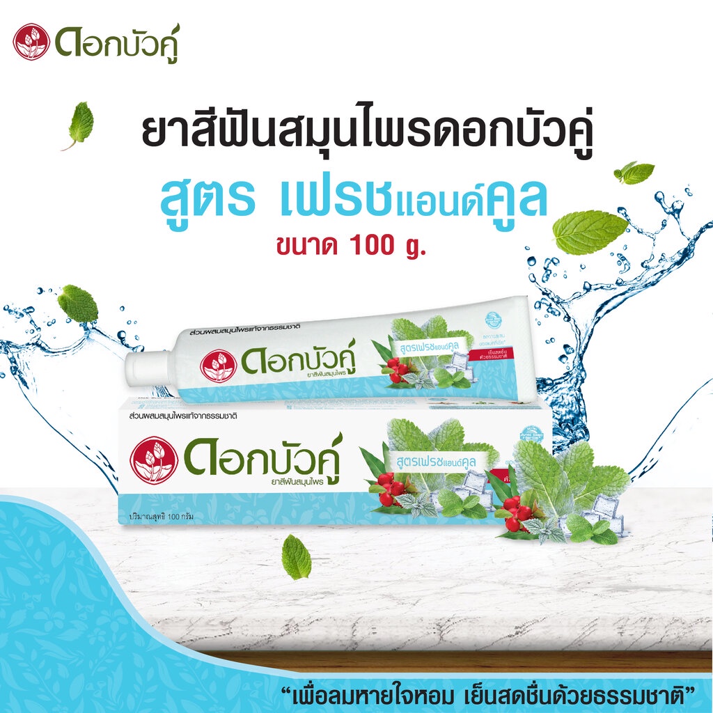 Twin ดอกบัวคู่ ยาสีฟันสมุนไพร เฟรช แอนด์ คลู 100 กรัม