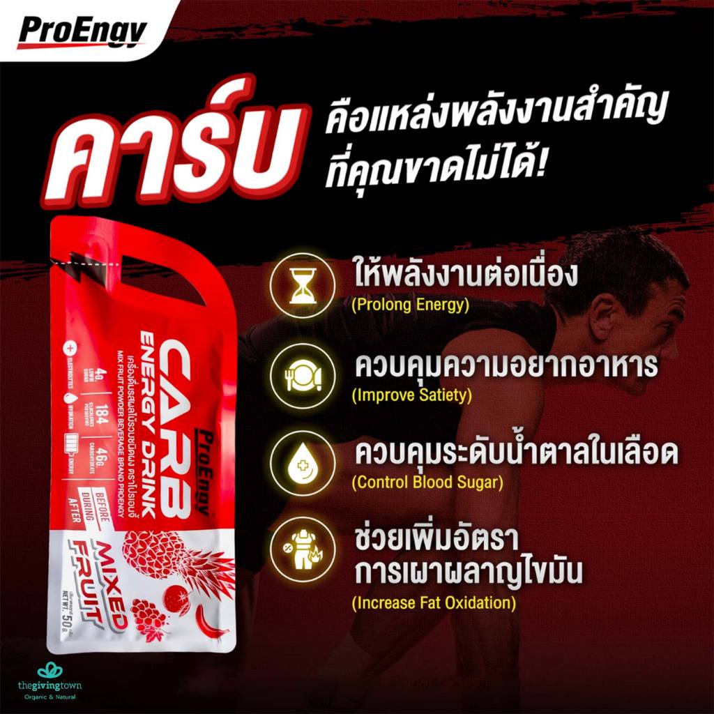 ProEngy Carb Powder Shake แบบซอง พกพา คาร์โบไฮเดรตแบบผงชง รสผลไม้รวม ผงคาร์โบไฮเดรต ให้พลังงานเร็ว