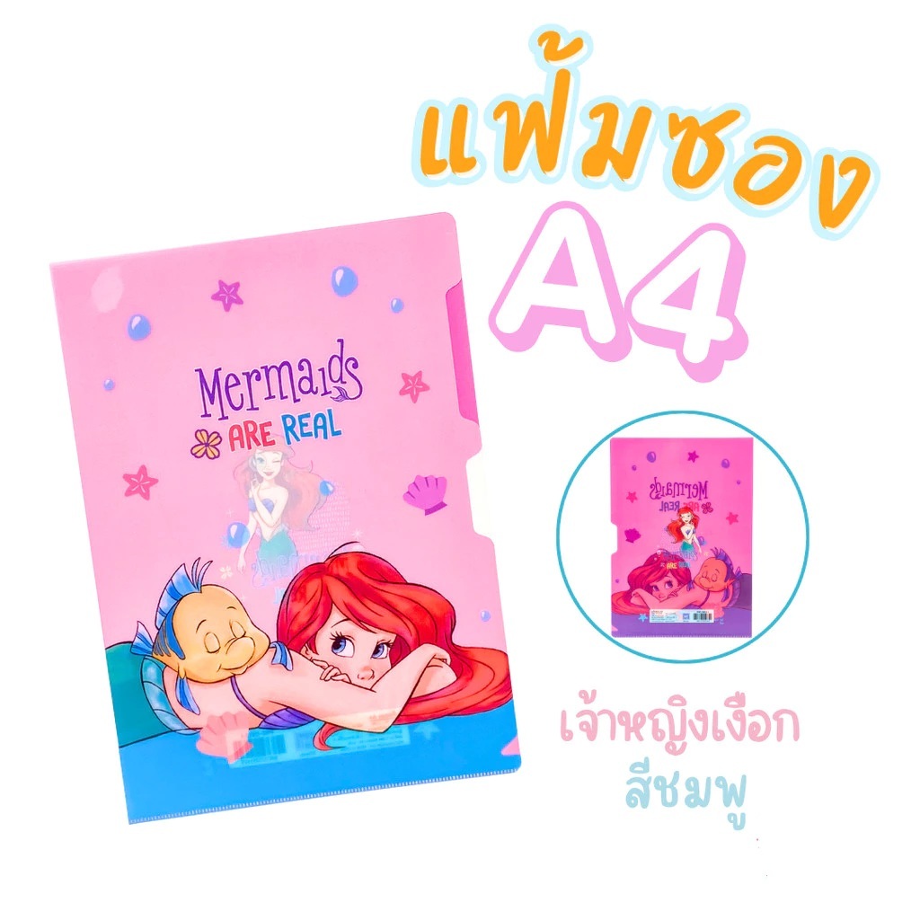 แฟ้มสอด แฟ้มซองพลาสติกใส่เอก สาร ลายเจ้าหญิงแอเรียล Mermaids Are Real ขนาดA4 PRC-OS12-1