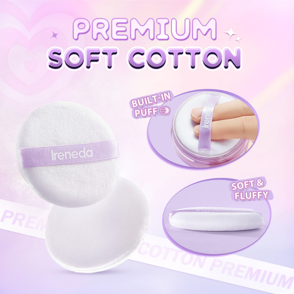 Ireneda แป้งฝุ่น เนื้อแมตต์ ควบคุม ความมัน นุ่ม โฟกัสสม่ําเสมอ โทนสีผิว น้ําหนักเบา ไร้ภาระ ธรรมชาติ ไม่เหนียวเหนอะหนะ เอสเซ้นส์พืช พรีเมี่ยม นุ่ม พัฟผ้าฝ้าย สวมใส่นาน