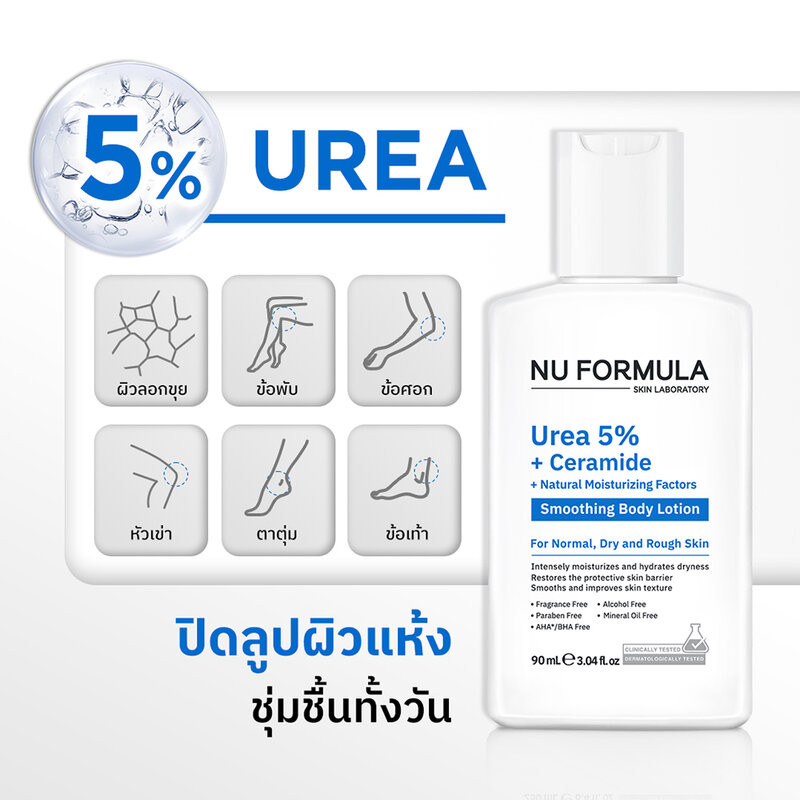 Nu Formula Urea 5% + Ceramide + Natural Moisturizing Factors Smoothing Body Lotion 90ml.
