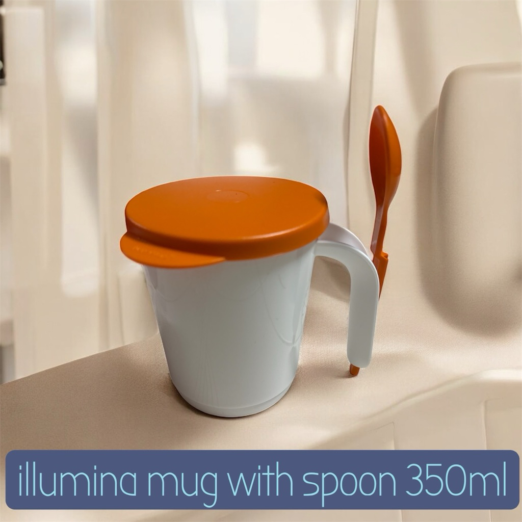 แก้วน้ำสีขาว+ช้อนTupperware รุ่น illumina mug with spoon ขนาด 350ml