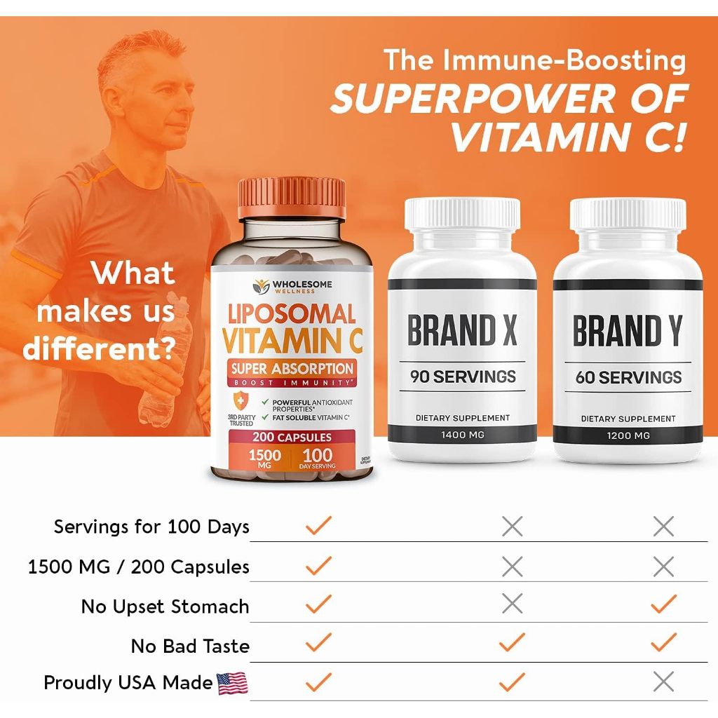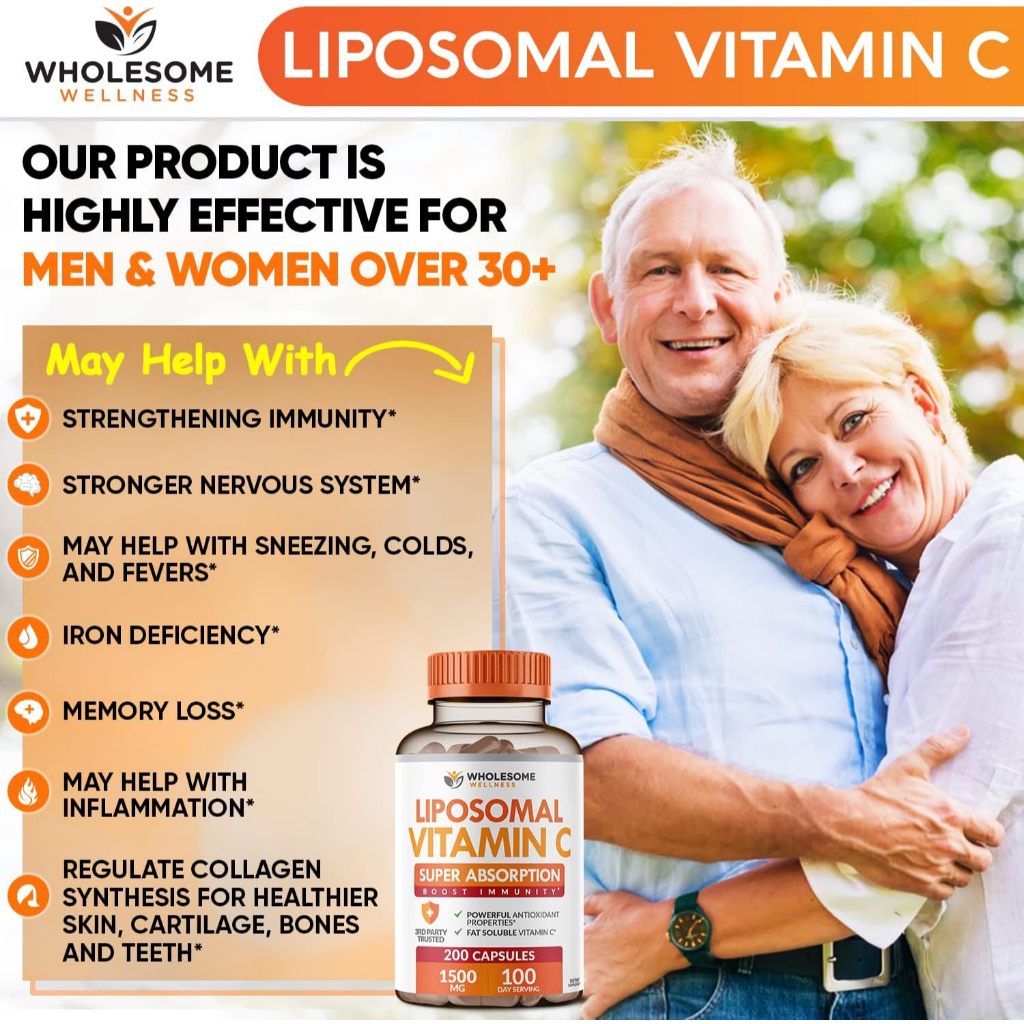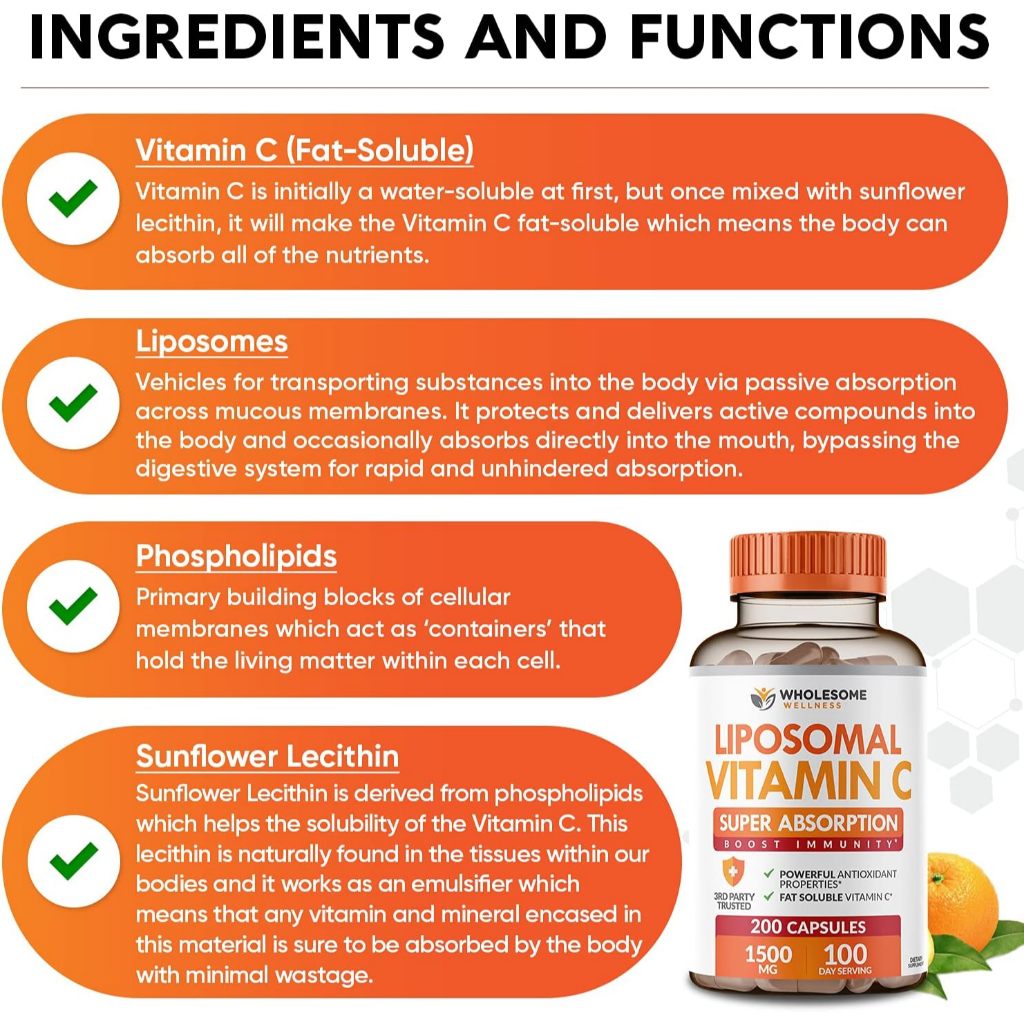[ของแท้ 100%] WHOLESOME LIPOSOME VITAMIN C 1500 mg SUPER ABSORPTION BOOST IMMUNITY 200 CAPSULES