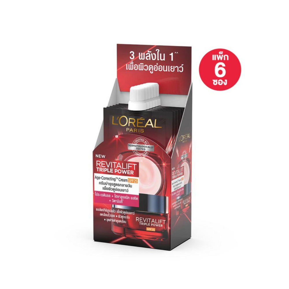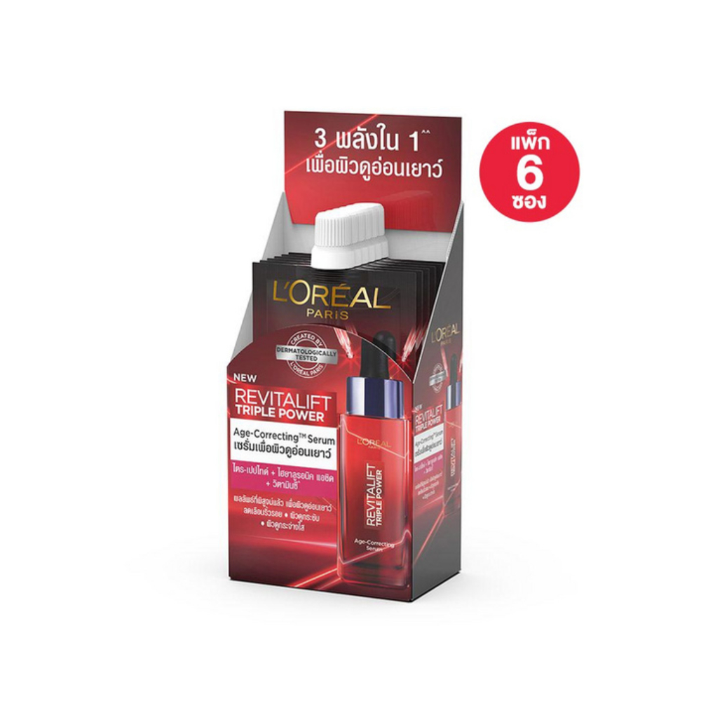 L'Oréal Paris ลอรีอัล รีไวทัลลิฟท์ ทริปเปิล พาวเวอร์ เอจ-คอร์เรคติ้ง เซรั่ม/ครีม 6มล. (1กล่อง6ซอง)