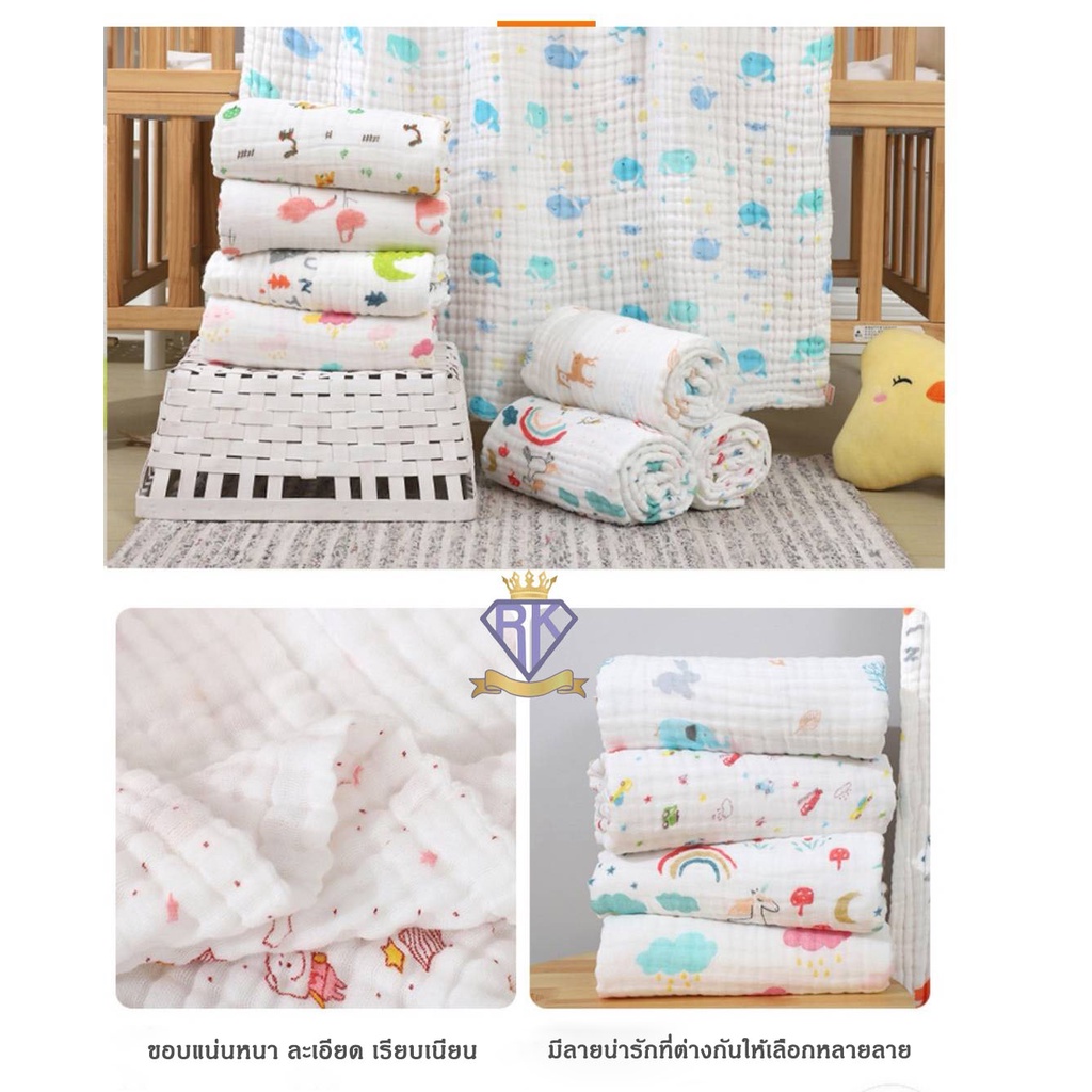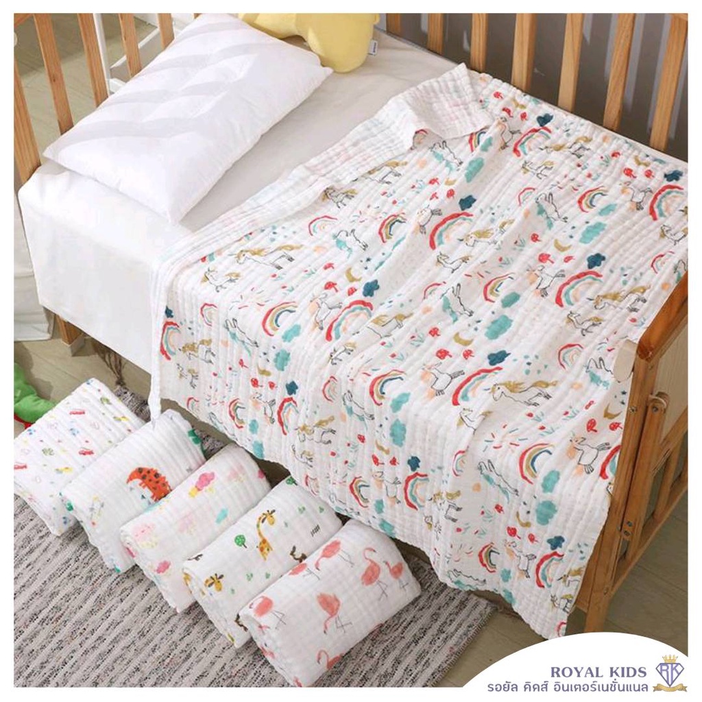 C0026 ผ้าห่ม ขนหนูอาบน้ำเด็ก ผ้าฝ้าย6ชั้น เด็กแรกเกิด นุ่มพิเศษ เป็นห่อตัว คลุมให้นม ห่ม ขนาด 110x110 cm.