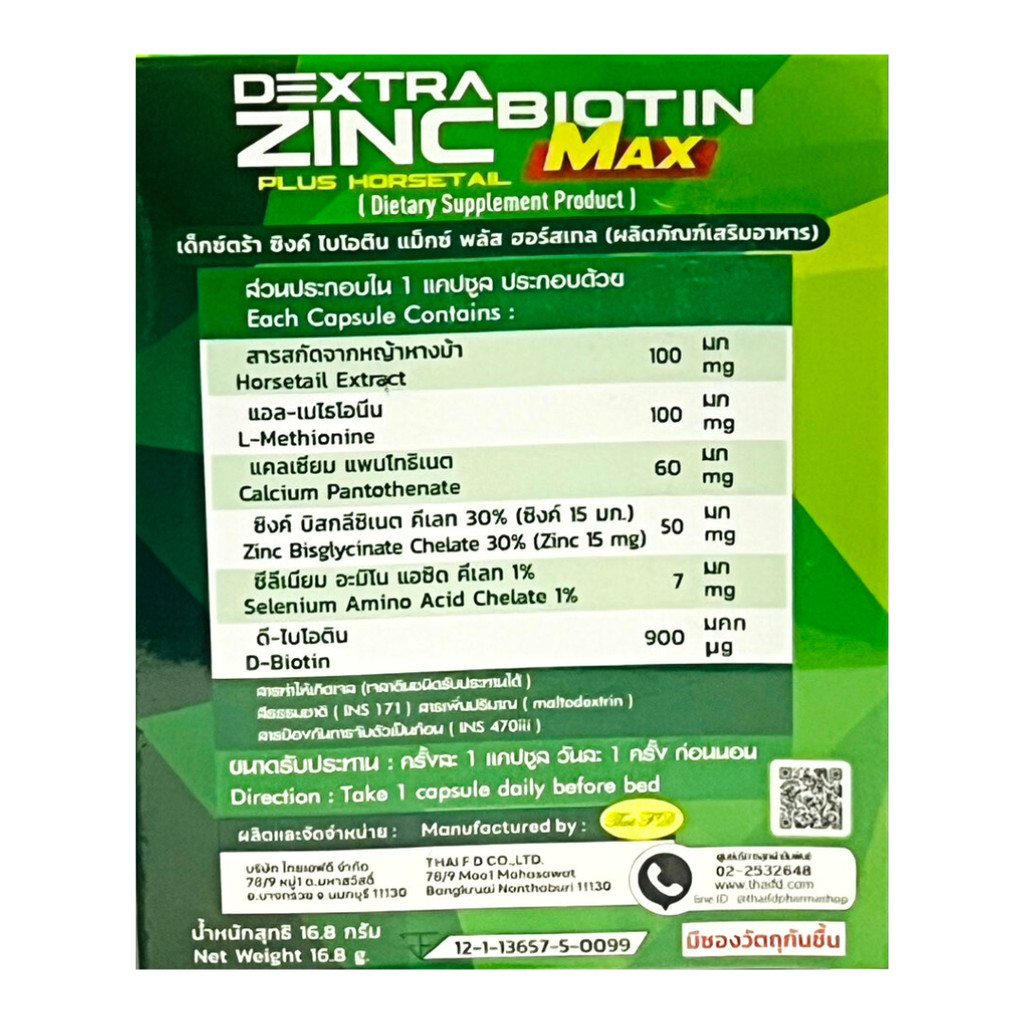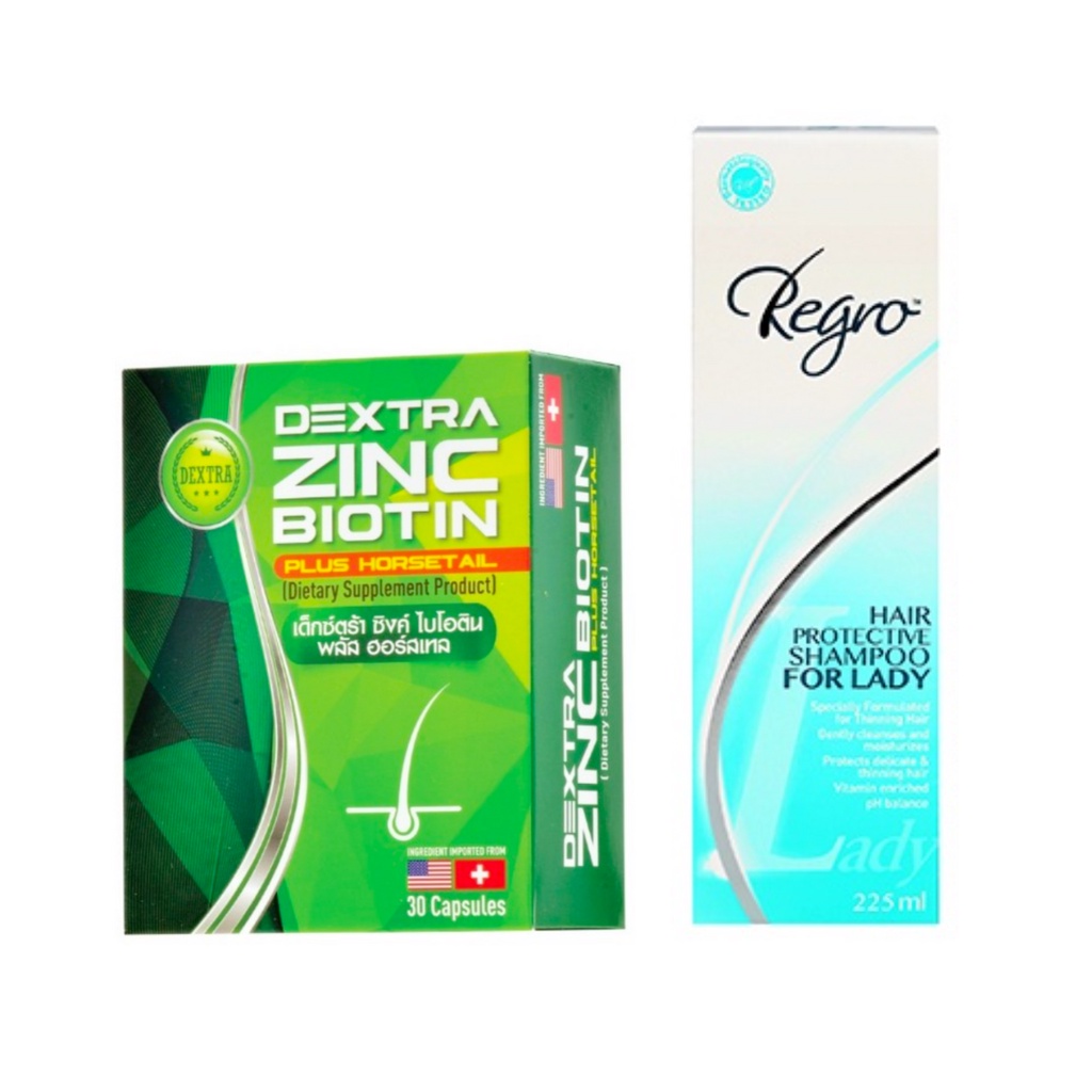 (สูตรใหม่) DEXTRA ZINC BIOTIN 30 แคปซูล + Regro Hair Protective Shampoo for Lady [PC]