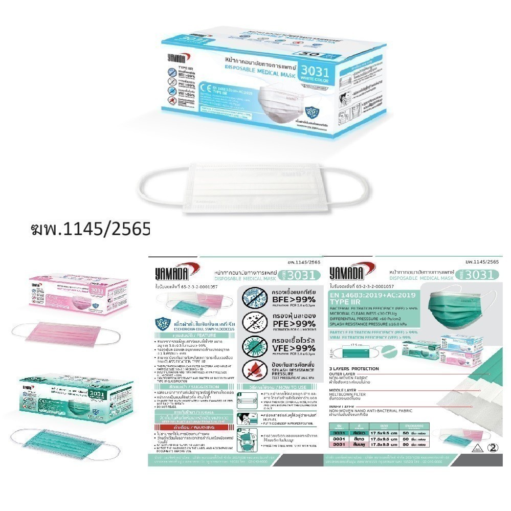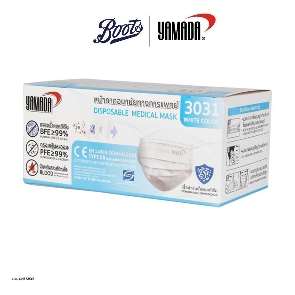 YAMADA ยามาดะ หน้ากากอนามัยทางการแพทย์ สีขาว รุ่น 3031 (50ชิ้น/กล่อง)