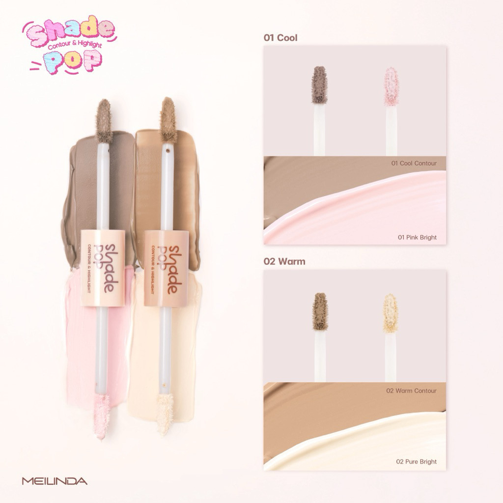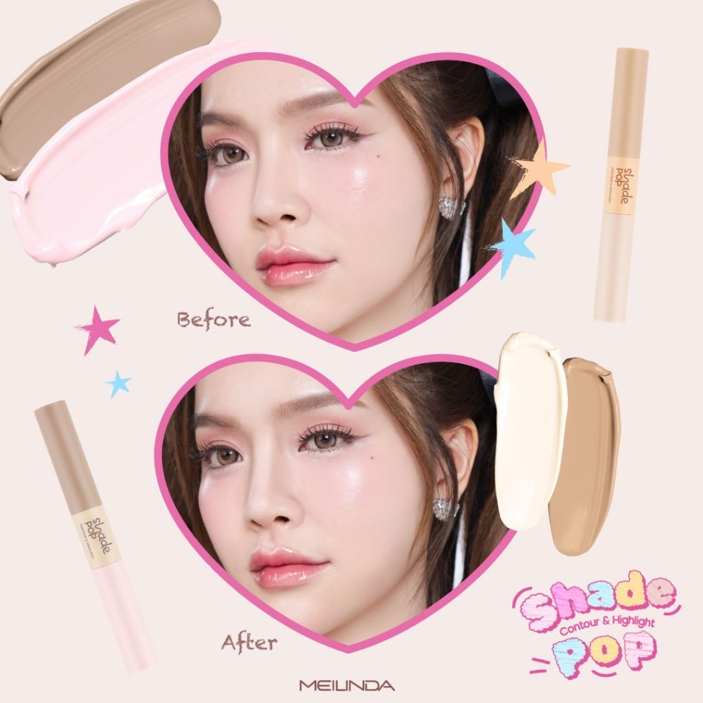 MC5108 คอนทัวร์+ไฮไลท์ Meilinda เมลินดา Shade Pop Contour & Highlight 2in1 เนื้อครีม เบลนด์ง่าย