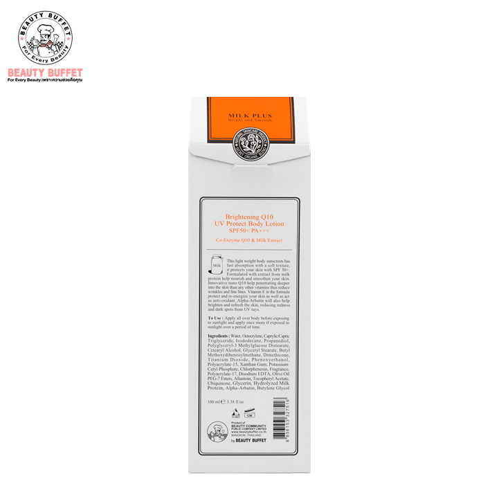 BEAUTY BUFFET SCENTIO MILK PLUS BRIGHTENI Q10 UV PROTECT BODY LOTION SPF50+PA++ ไวท์เทนนิ่ง คิวเทน บอดี้โลชั่น (100 ml.)